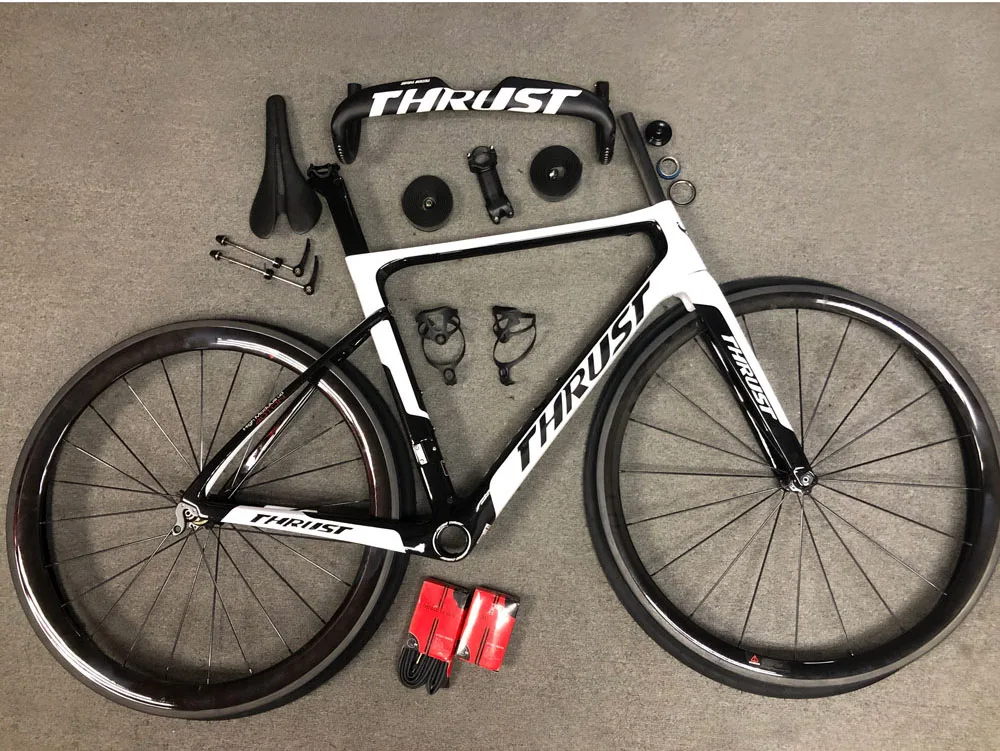 THRUST Carbon Bicycle Road Bike Frameset Aero Racing Bicycle Carbon Fibre T1000 Bicicleta 50mm 700c Wheelset 25C Tire