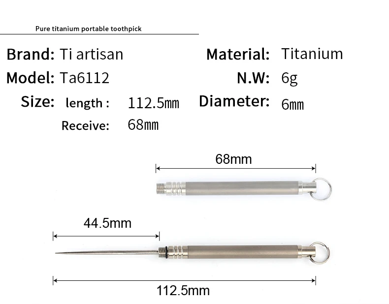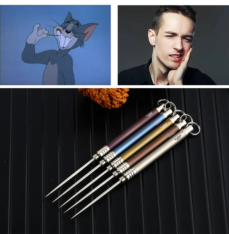 Pure Tiartisan Eco-Friendly Ultralight Portable Titanium Toothpick set TitaniumToothpick With Holder set 5 colors Ta6112Ti