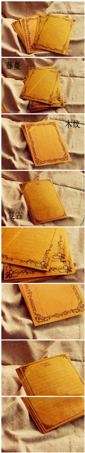 TIAMECH 8Sheets/Lot European Style Vintage Letter Lace Vine Wood Kraft Paper Letter Writing Home DIY Stationery H0256