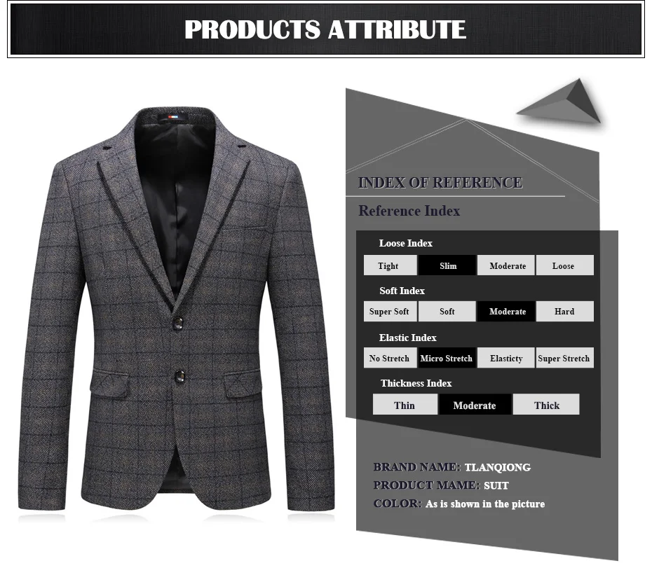 TIAN QIONG Men Casual Blazer Jacket Slim Fit Luxury Plaid Blazer for Wedding Business Casual Suit Jacket Men Elegant Coats Smart