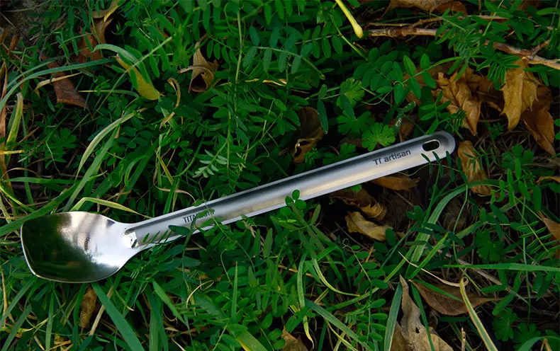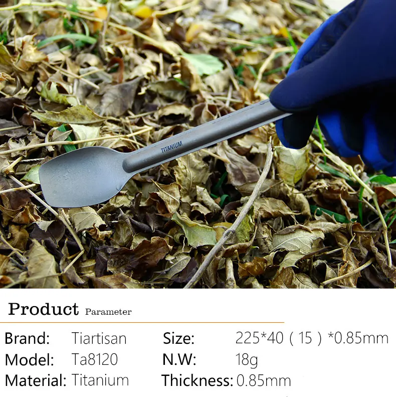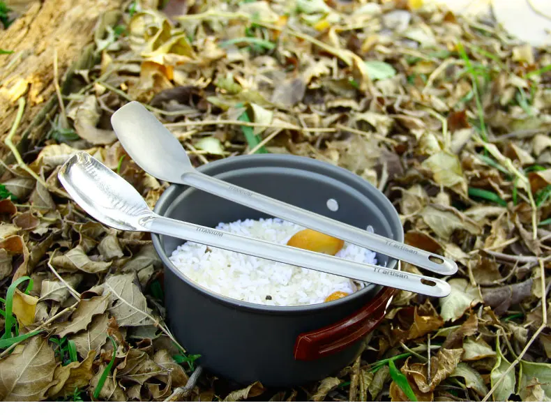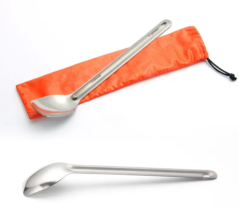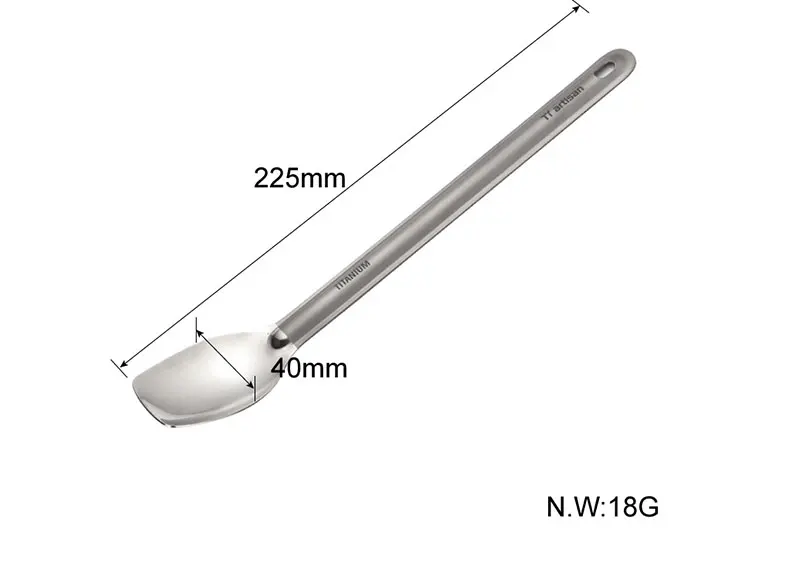 Pure Tiartisan New Titanium Large Spoon 225mm Length Polished and Sandblasted Ta8120Ti