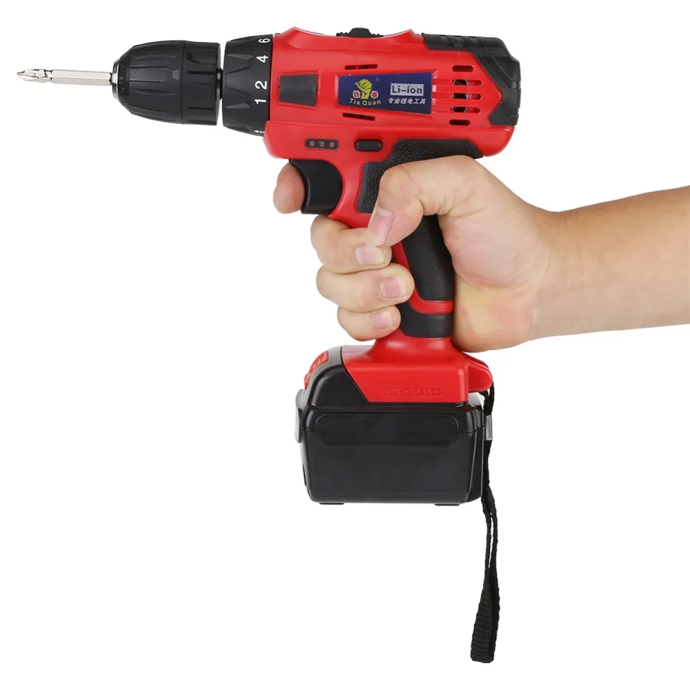 TIEQUAN Cordless Electric Drill AC 220V High Power Rechargeable Electric Screwdriver 21V Li-ion Battery Drill Hole Power Tools
