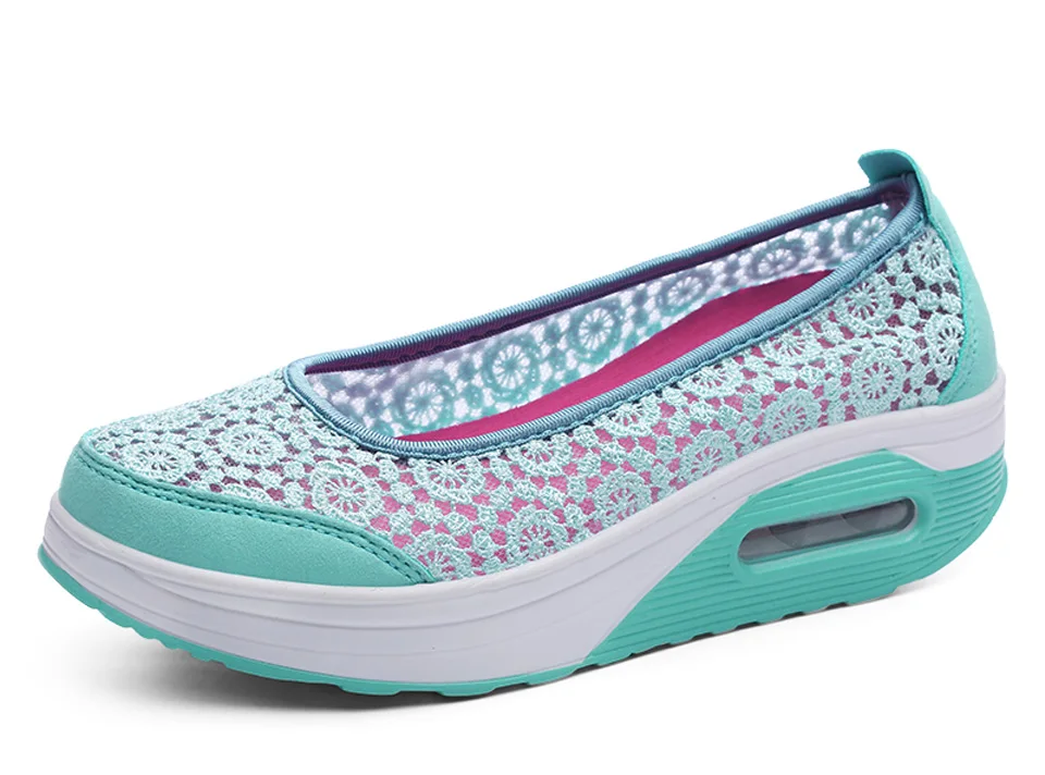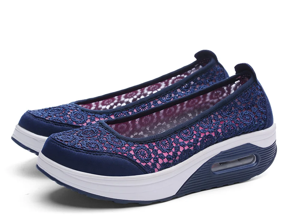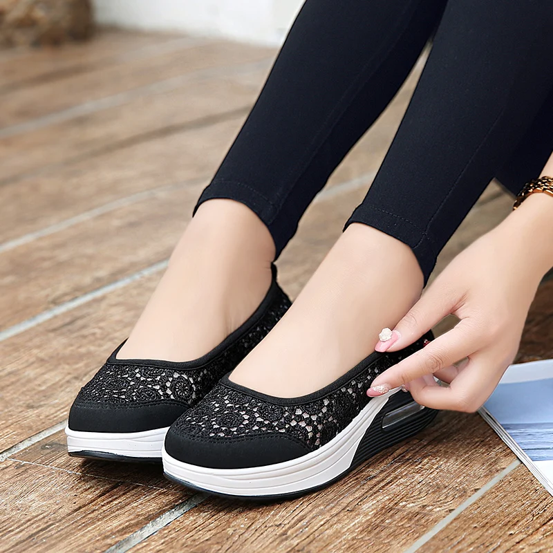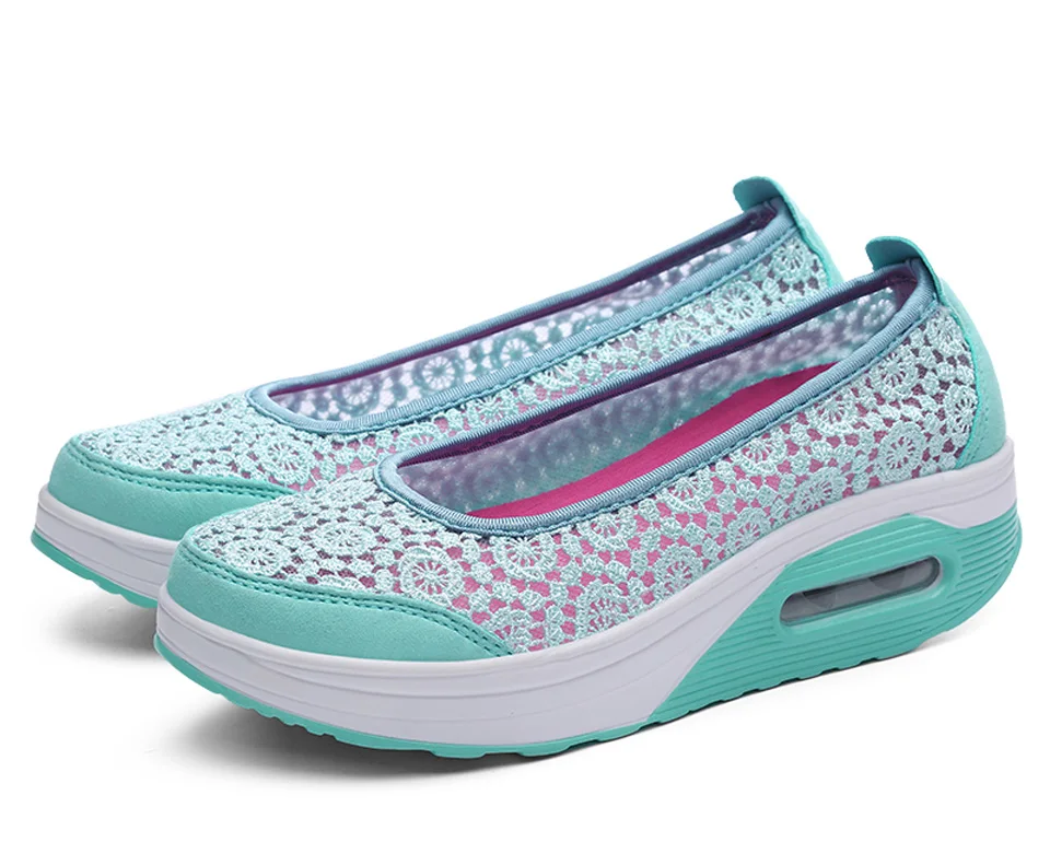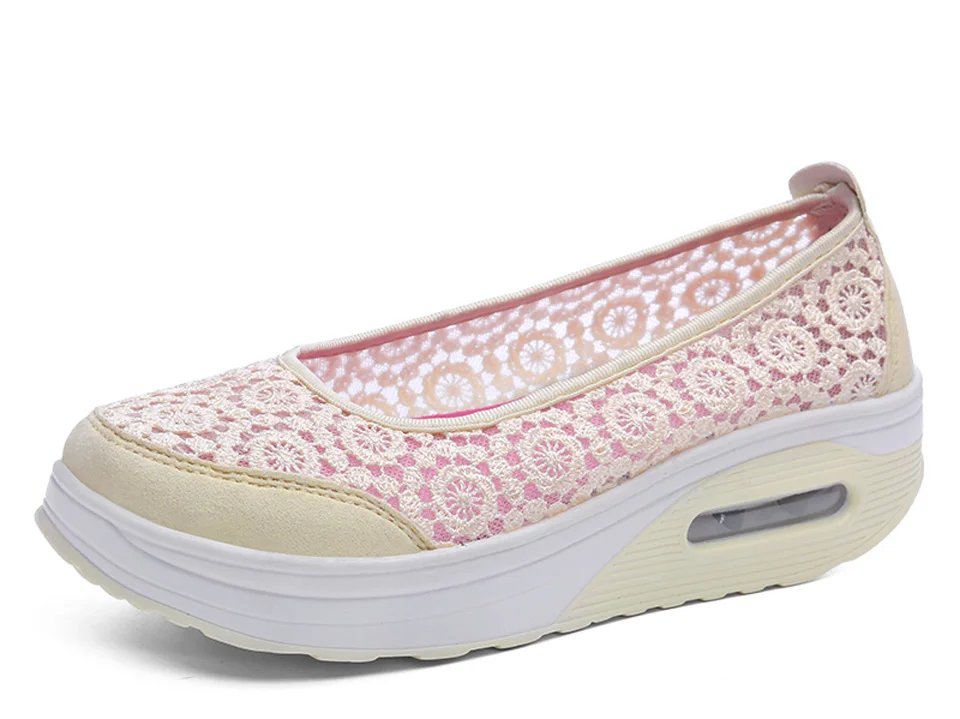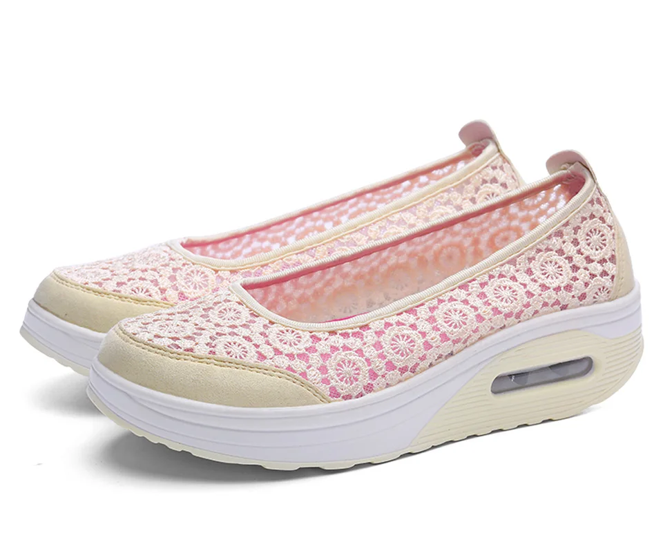 Women Air Shoes Wedge Flats Harajuku Shoes Lace-up Mocassim Feminino Flower 6 Colors Ladies Hollow Relaxation Zapatos