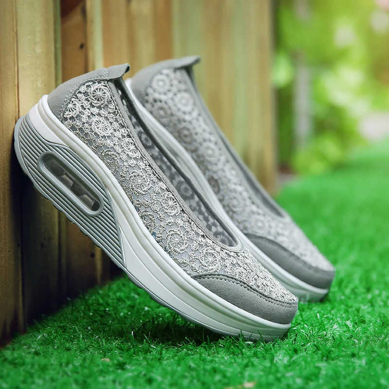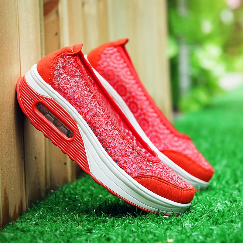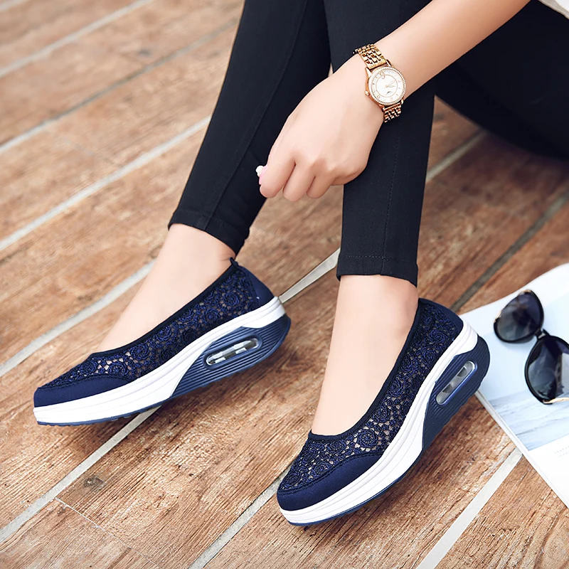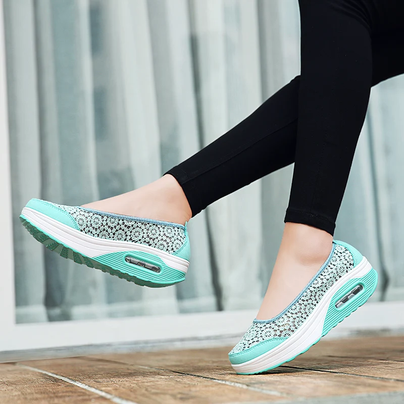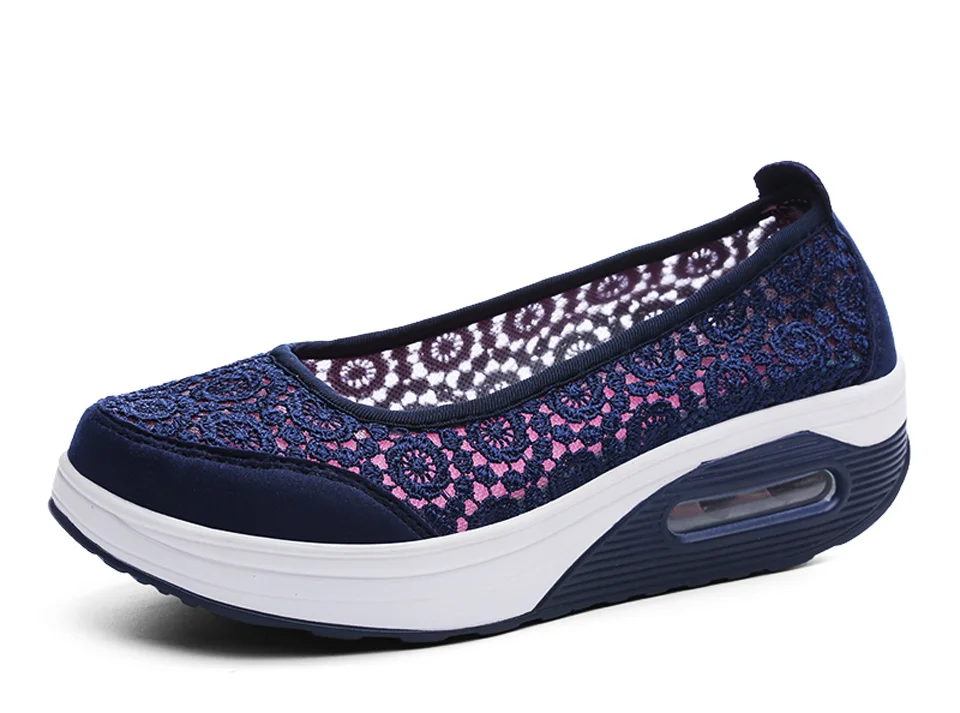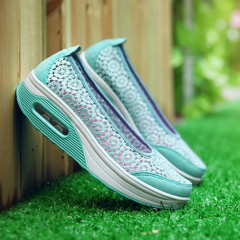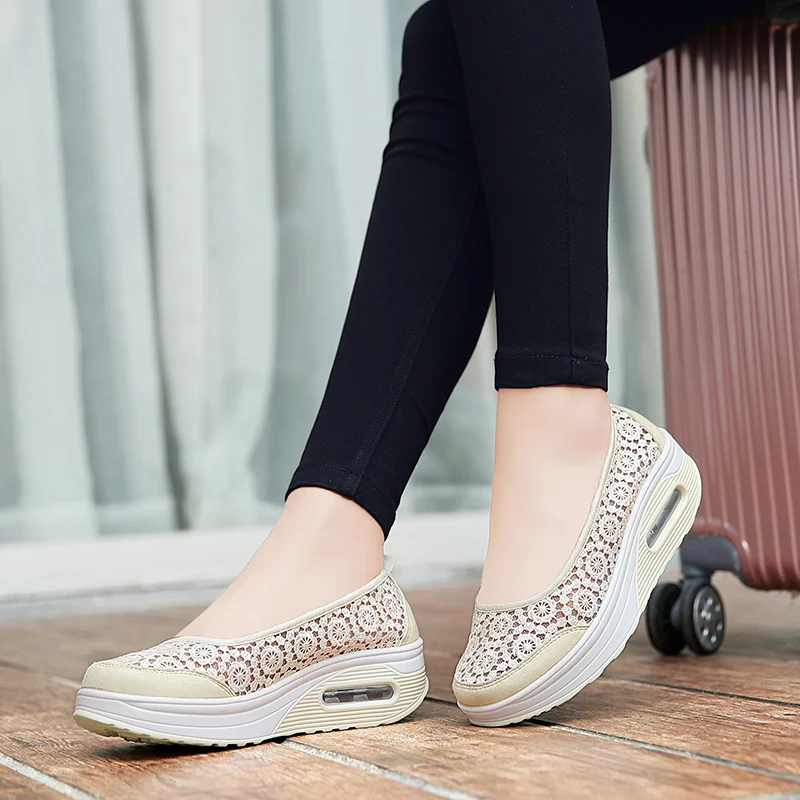 Women Air Shoes Wedge Flats Harajuku Shoes Lace-up Mocassim Feminino Flower 6 Colors Ladies Hollow Relaxation Zapatos
