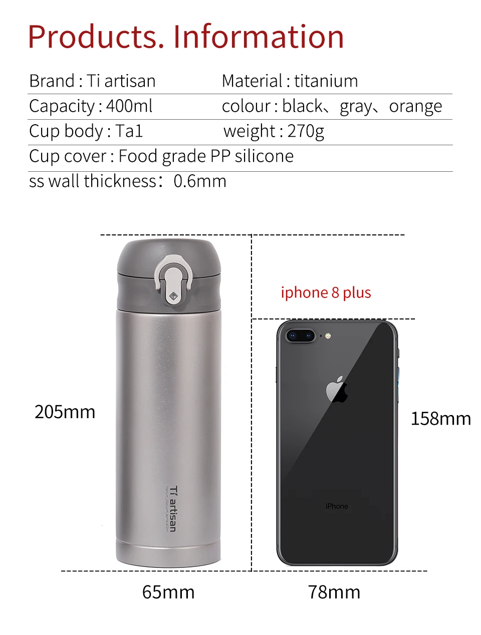 Titanium outdoor vacuum cup portable car self-driving travel kettle (400ml)