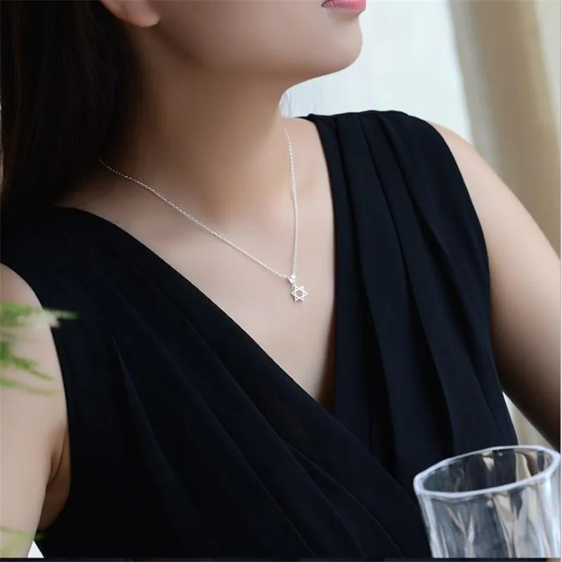 TJP Cute Star Pendants Necklace Jewelry For Women Party Accessories Hot 925 Sterling Silver Girl Choker Necklace For Girl Bijou