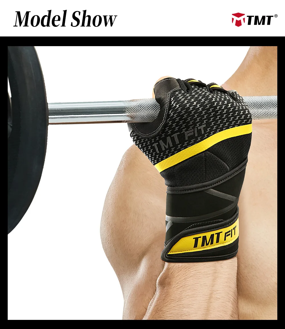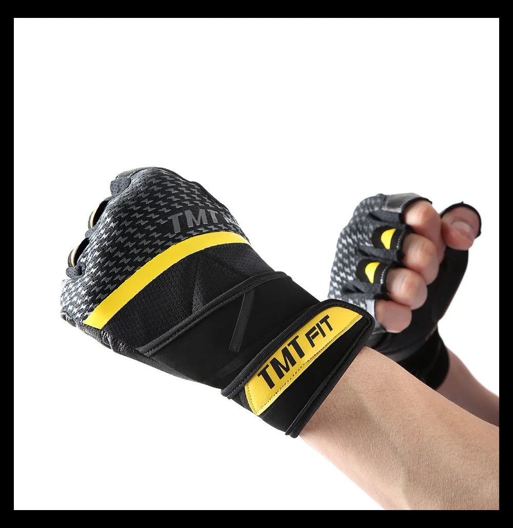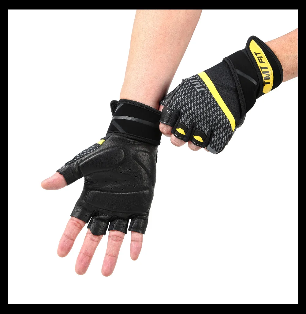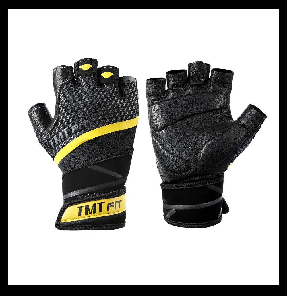 TMT Body Building lambskin Gym glove Equipment Weight lifting Fitness Gloves Non-slip breathable Long Wrist Wrap Sports Exercise