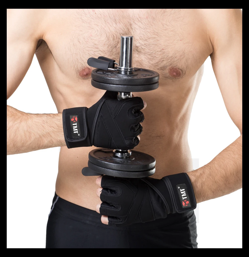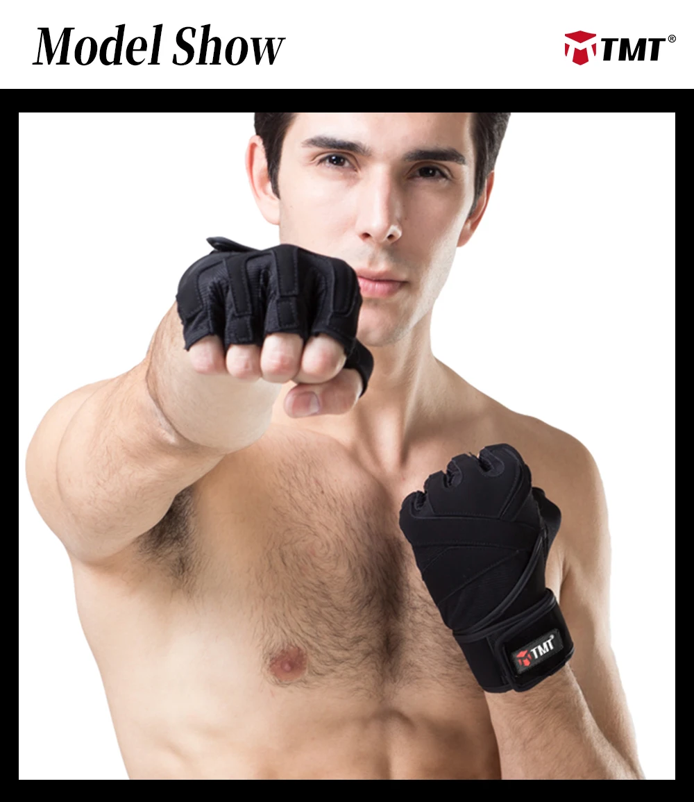 TMT Fitness Gloves Weight Lifting Gloves Men Women Half Finger Protect Wrist Gym Training Fingerless Weightlifting Sport Gloves