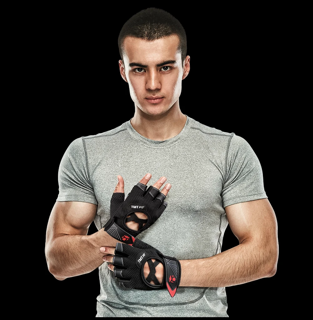 TMT Gym Gloves Men Women Body Building Half Finger Fitness Gloves An-slip Weight Lifting Sports Training Fingerless Gloves