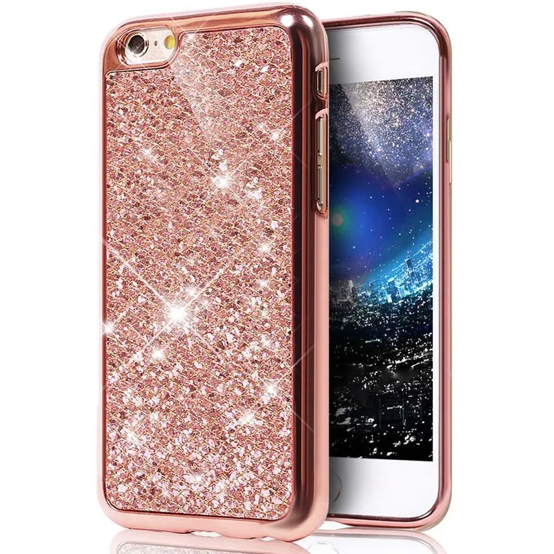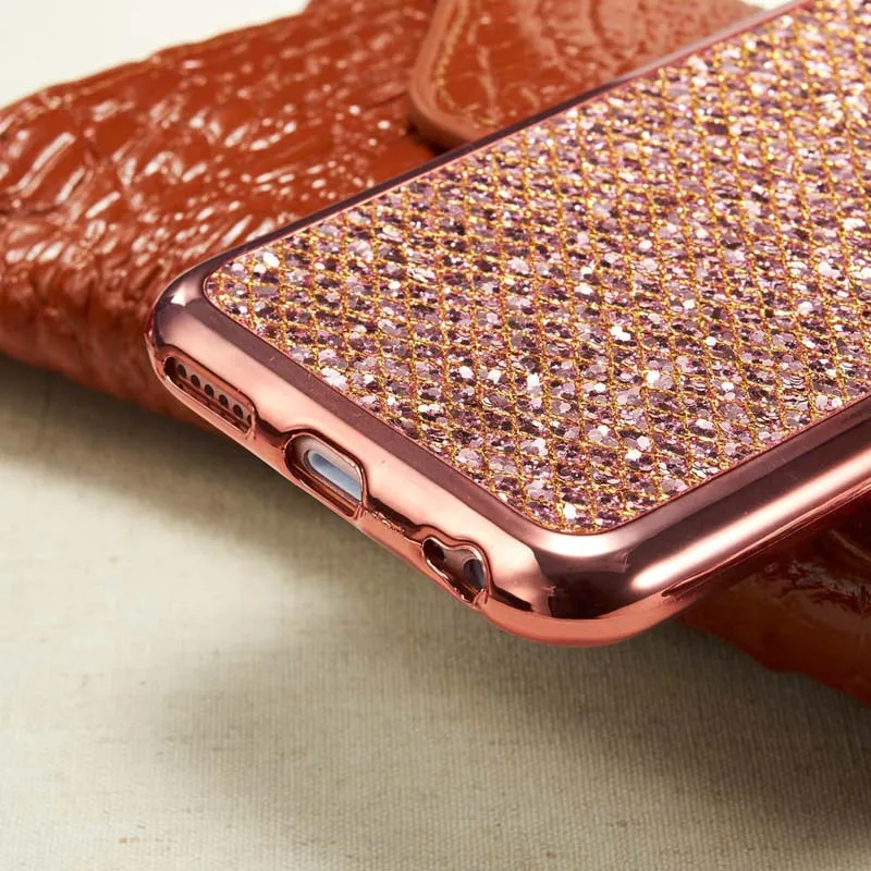 Tobocloo Glitter Bling Soft Cover Case For Apple iPhone X 6 6S 7 8 Plus Case Phone Protector Silicon TPU Coque Gold Color Case