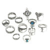 Tocona 12pcs/Set Bohemian Vintage Antique Silver Elephant Leaf Crown Finger Midi Knuckle Rings Set for Women Jewelry 6581