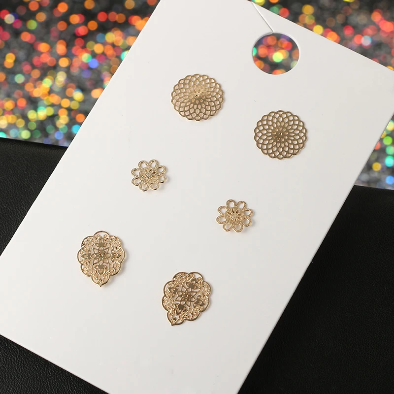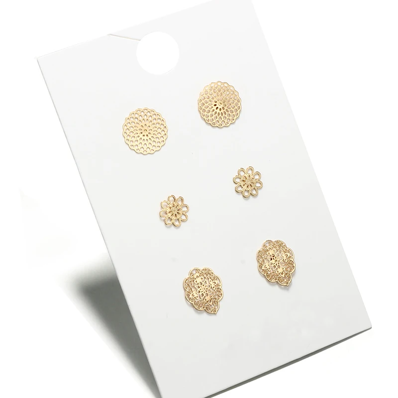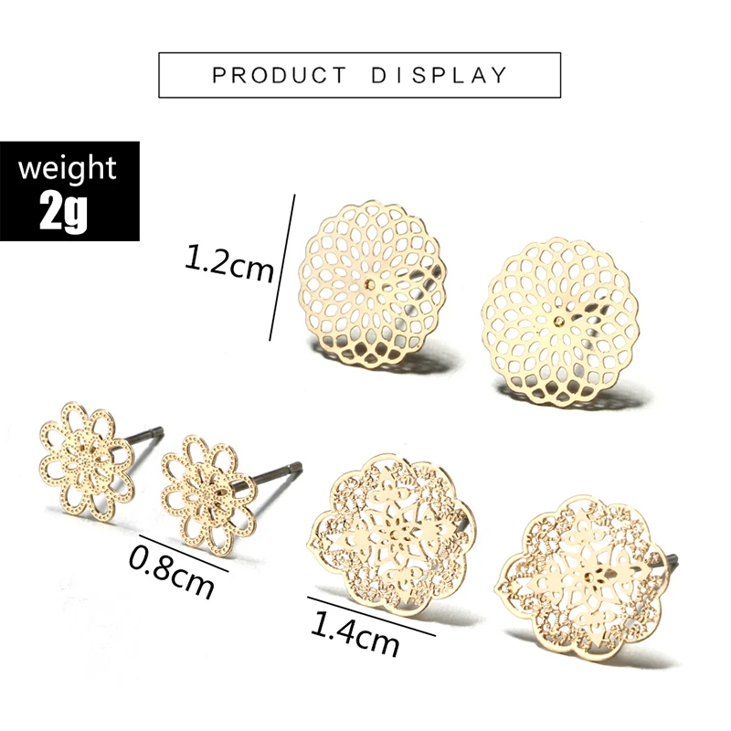 Tocona 3 pair/set Bohemian Hollow Flower Stud Earrings Set Punk Gold Alloy Earring Brincos for Women Jewelry 6550