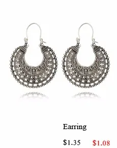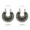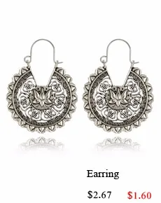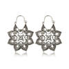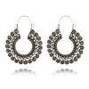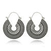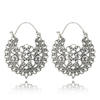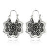 Tocona Vintage Antique Silver Hollow Flower Lotus Crystal Hoop Earrings Ethnic Carved Earring Brincos for Women Jewelry