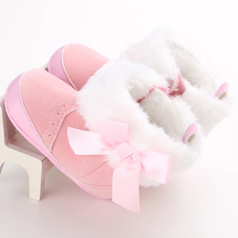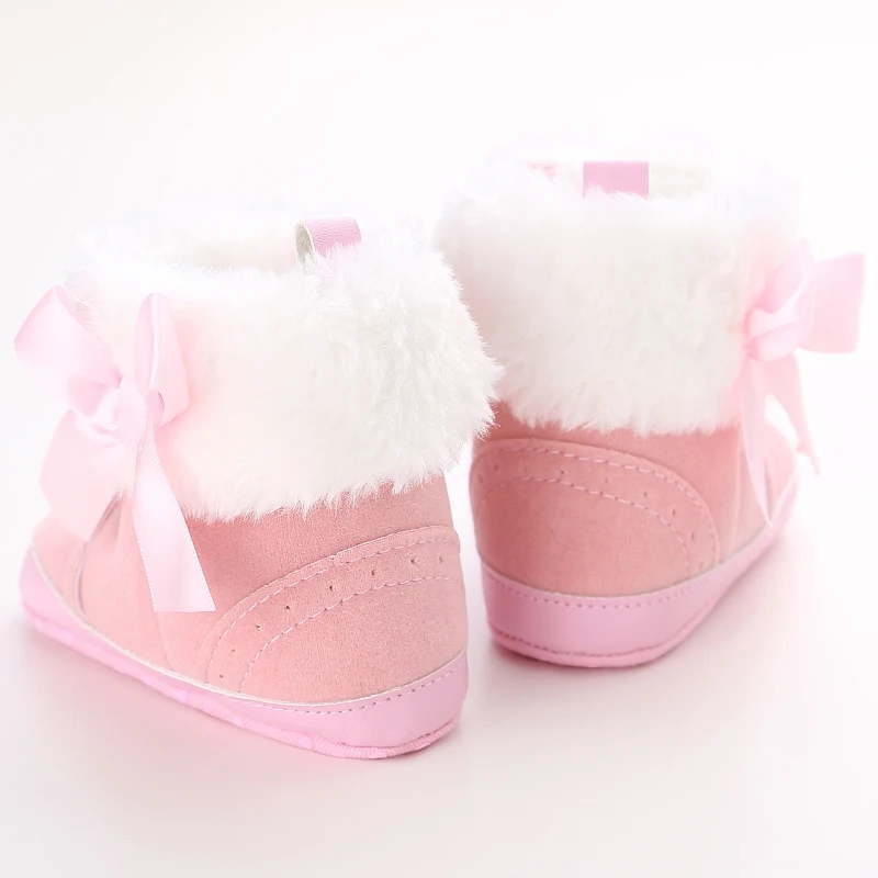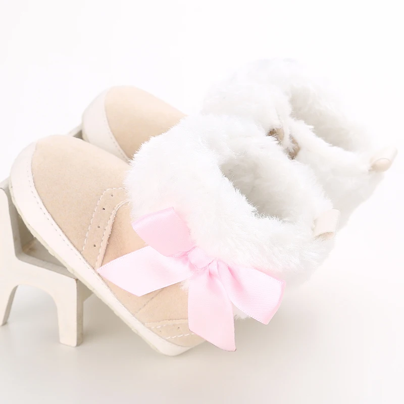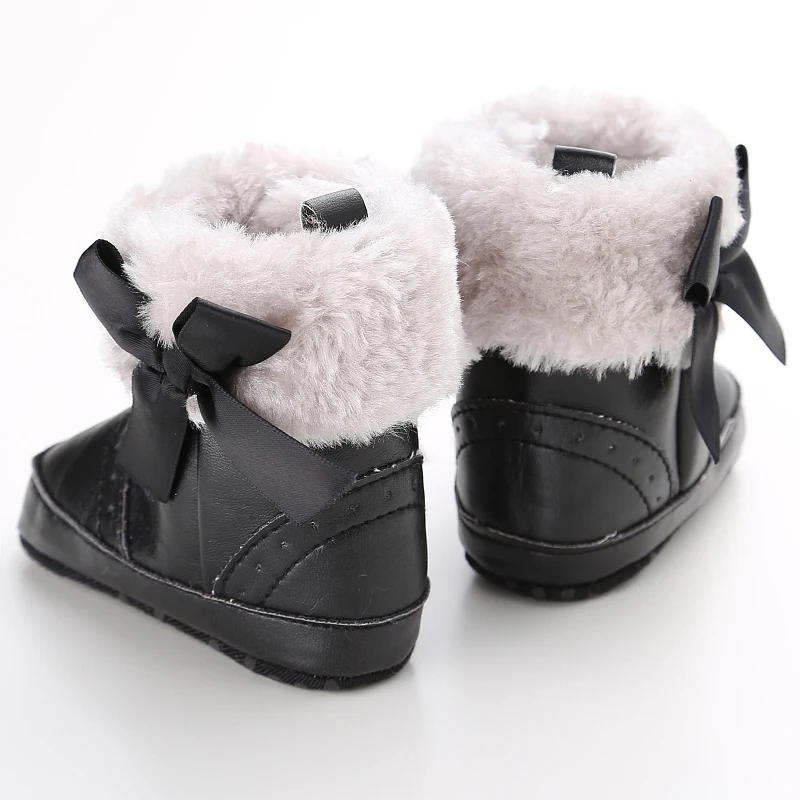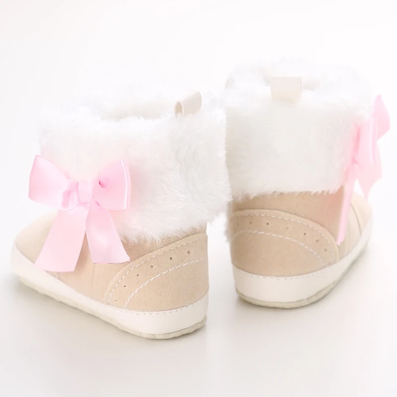 Toddler Baby Boys Girls Newborn Prewalker Winter Snow Warm Bow Boots Soft Shoes Pink Black Beige