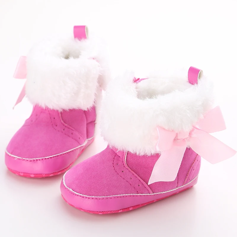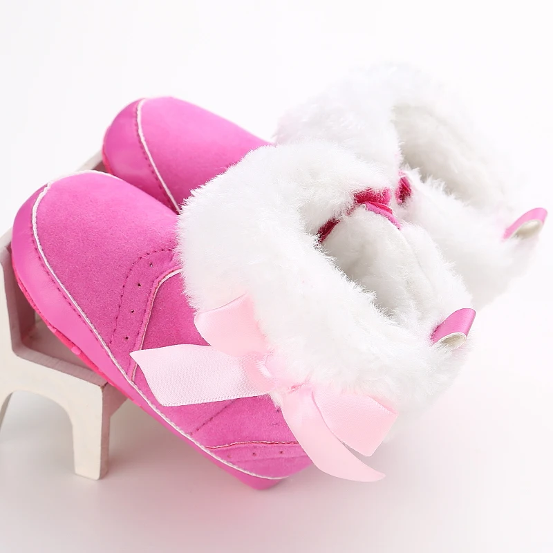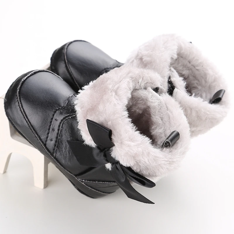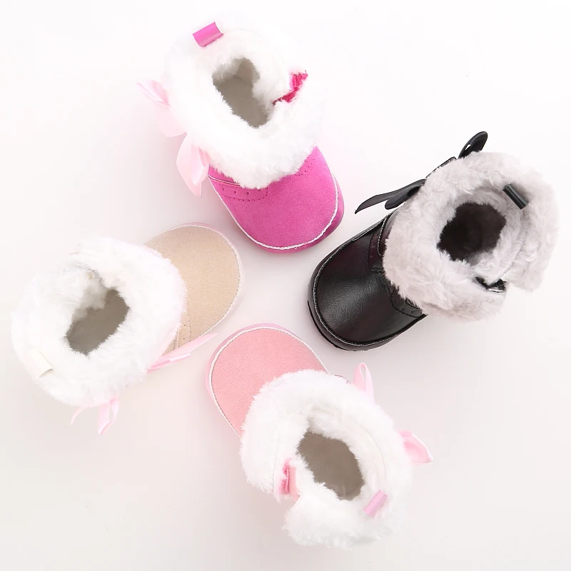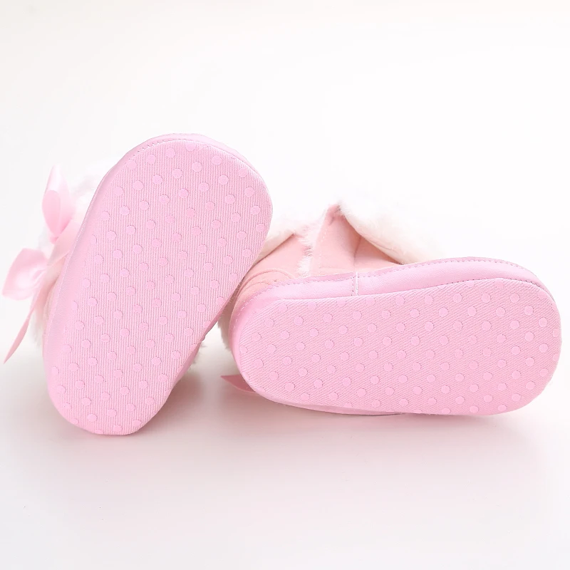 Toddler Baby Boys Girls Newborn Prewalker Winter Snow Warm Bow Boots Soft Shoes Pink Black Beige