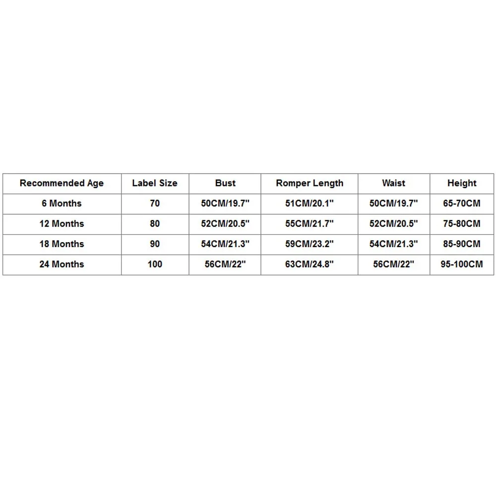Recommended Age Label Size Bust Romper Length Waist Height