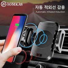 TOMKAS Auto Open Car Holder Qi Wireless Charger For iPhone X 8 Plus Samsung S8 S9 Car Mount Fast Charger Wireless Charging Pad