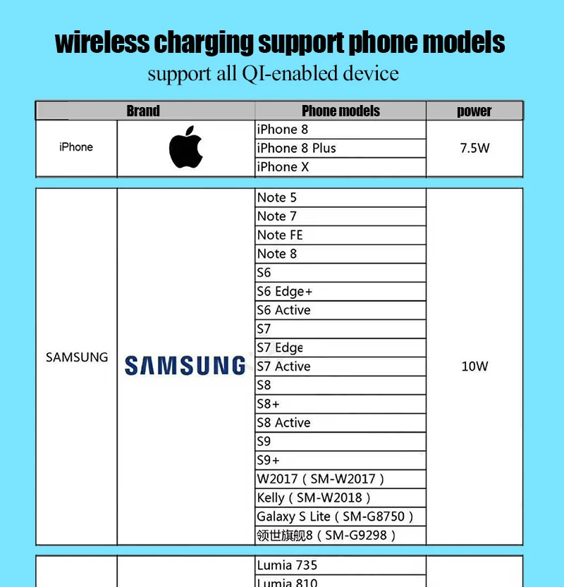 Qi wireless charger, allows to charge for any Qi-enabled device with high sensitivity, intelligent identification.