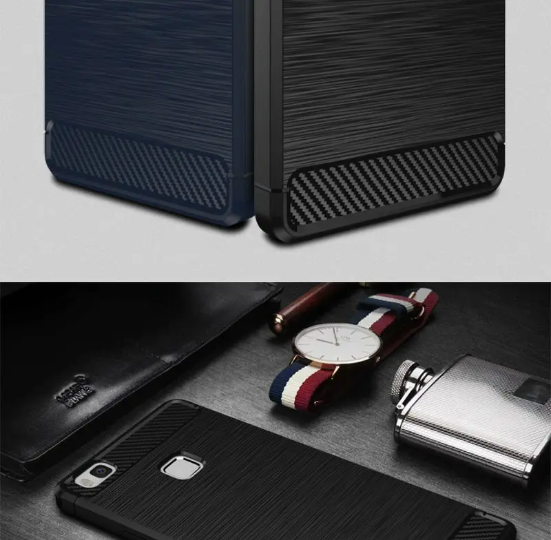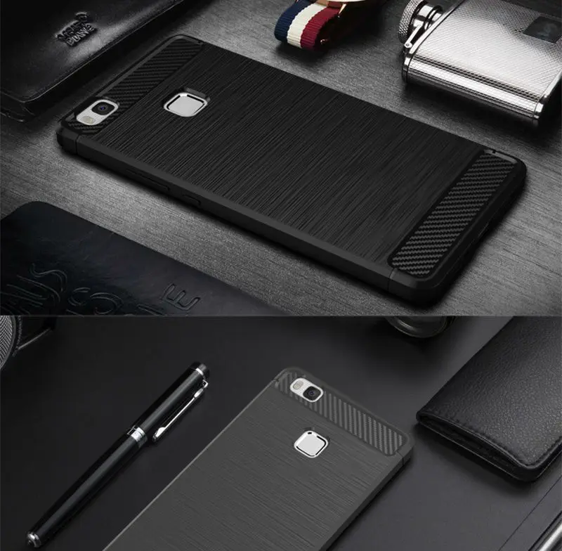 P9 Lite Silicone Case Luxury Soft TPU Phone Back Cover Brushed Anti-knock Coque For Huawei P9 Lite Carbon Fiber Texture