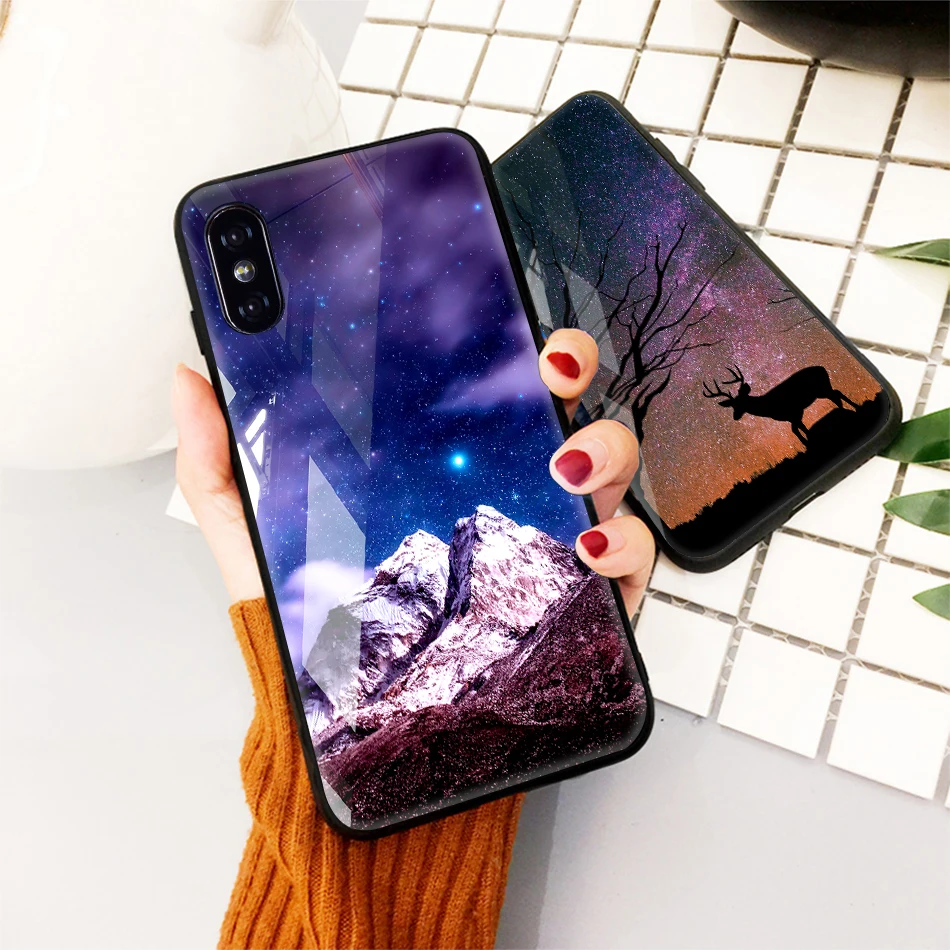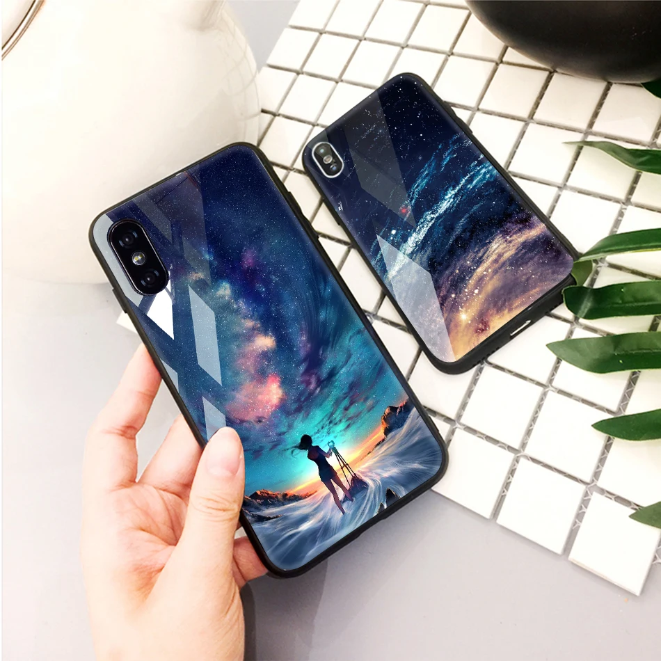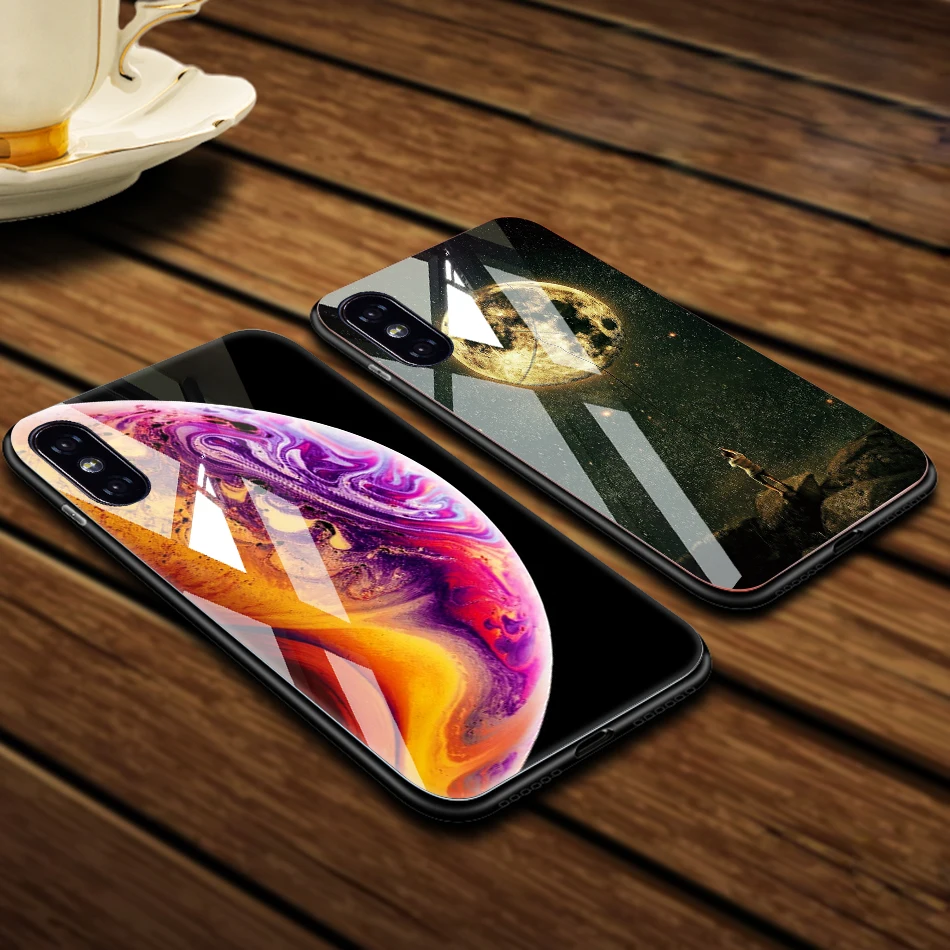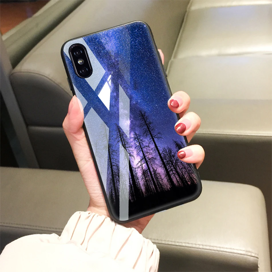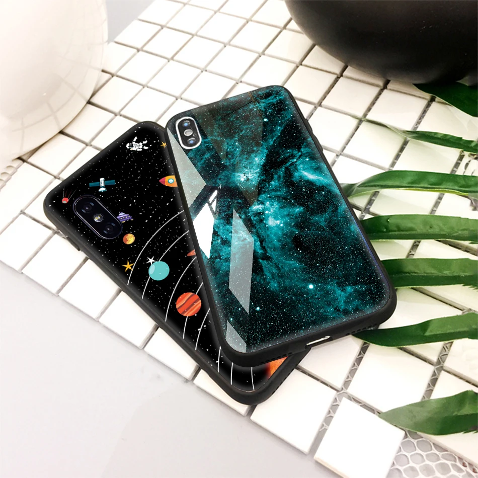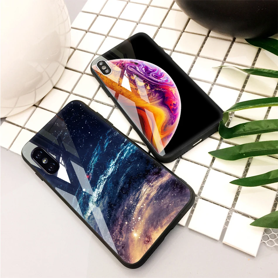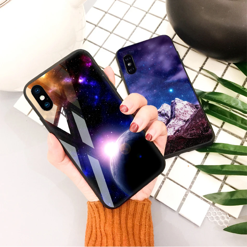 TOMKAS Tempered Glass Case For iPhone XS Max XR XS Silicone Stars Space Cover Phone Case For iPhone X 10 XS XR Luxury Cases TPU