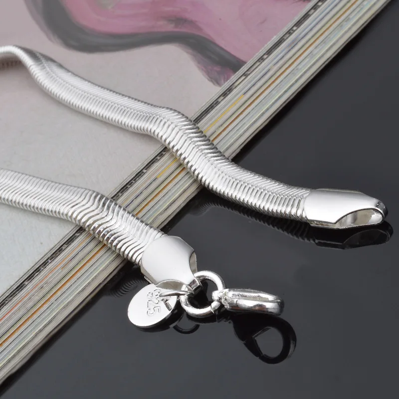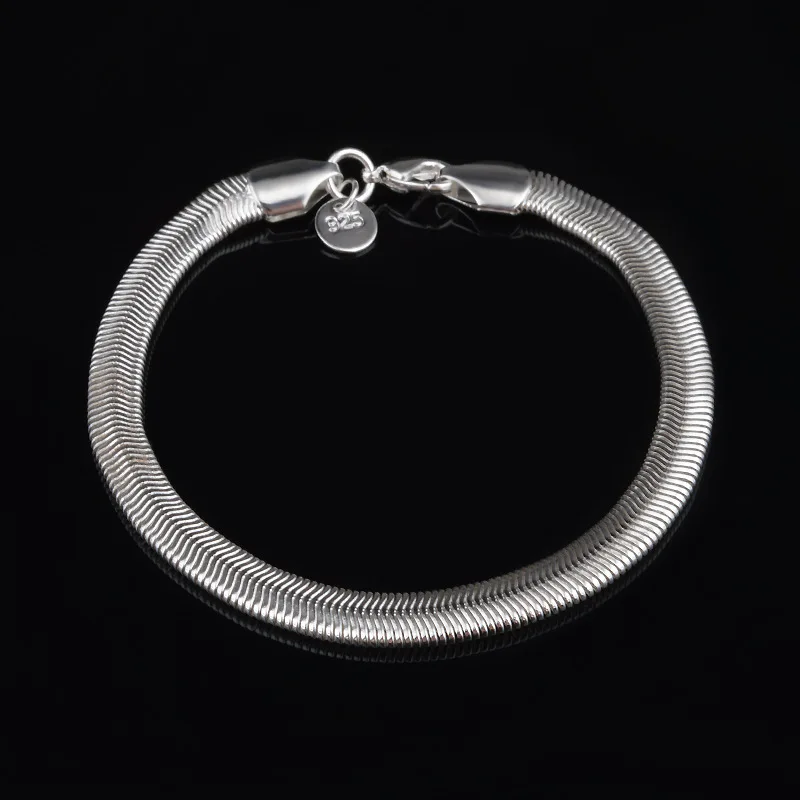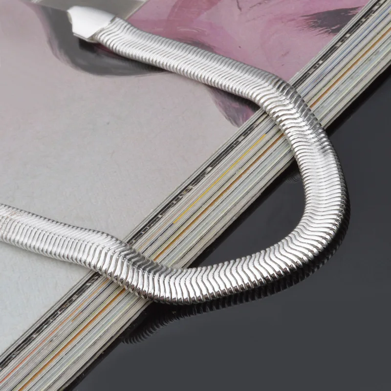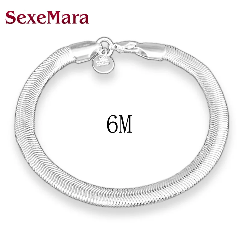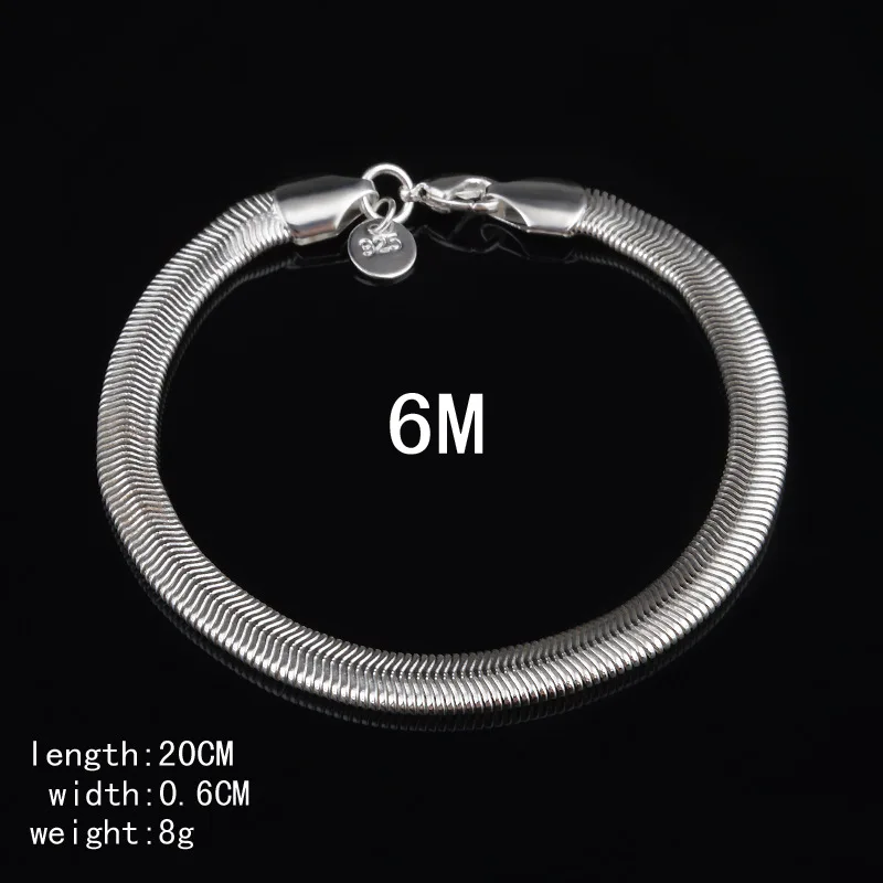 Tone men Bracelet&Bangle women,6MM Flat Snake Bone Male silver plated bracelet,hot 925 solid silver fashion Gift Jewelry