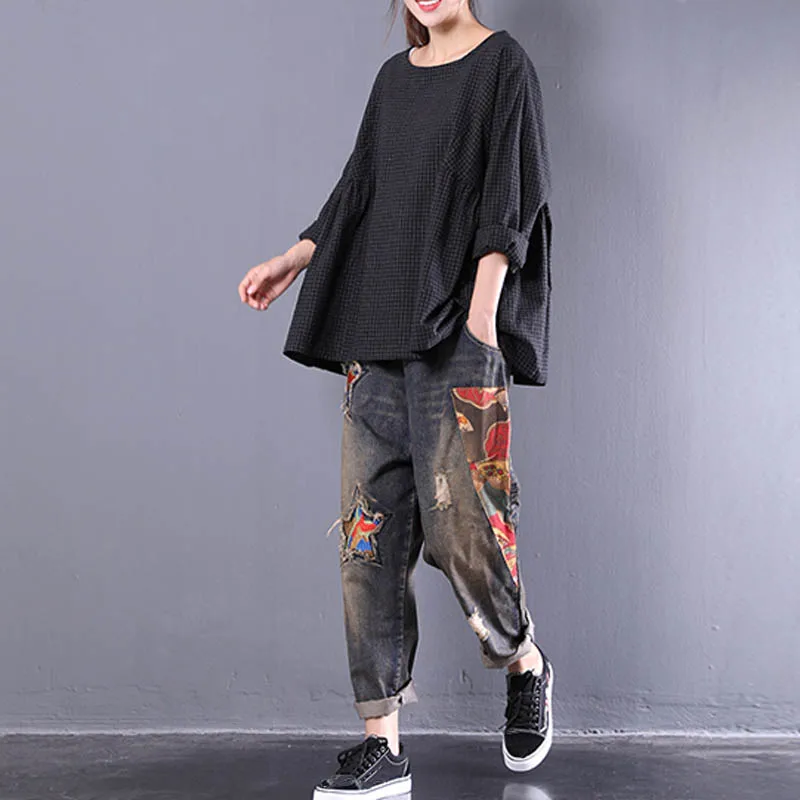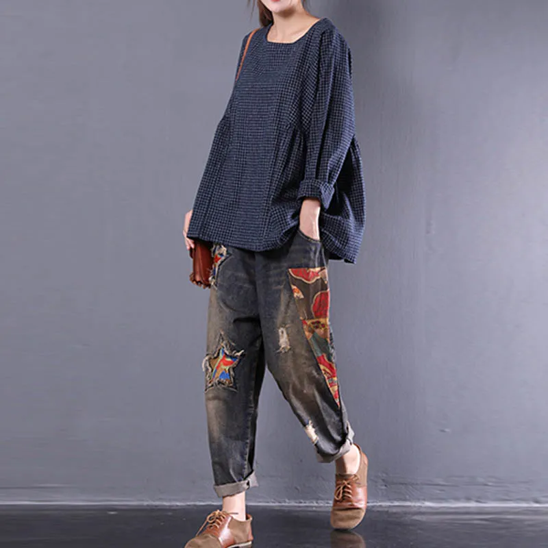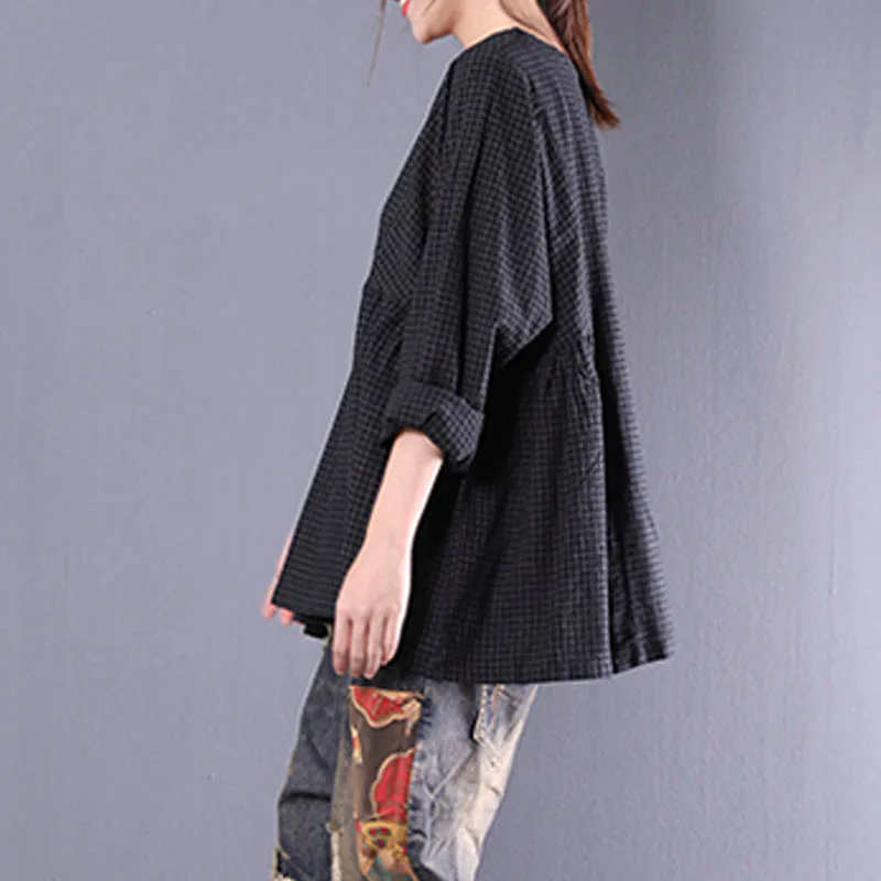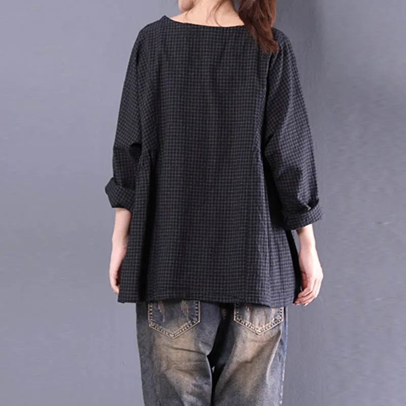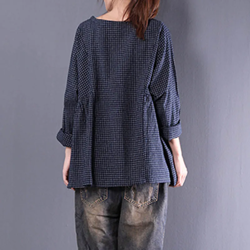 Feature:Plus Size Shirt Women O Neck Check Plaid Tartan Long Sleeve Casual Blouse Top