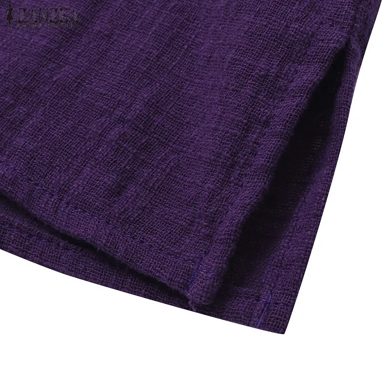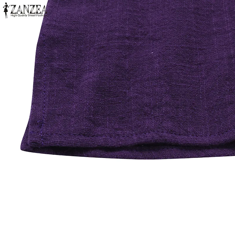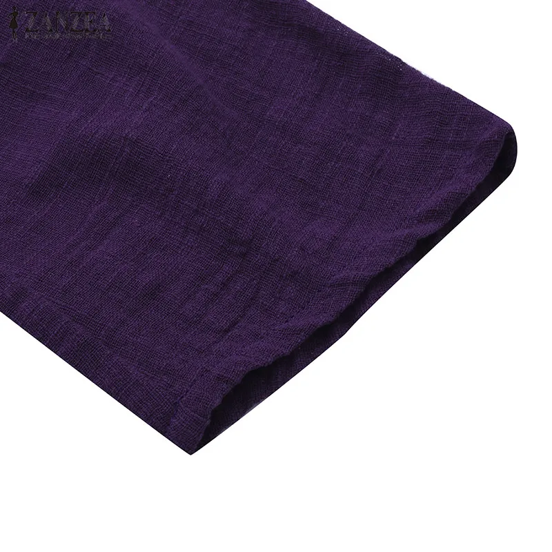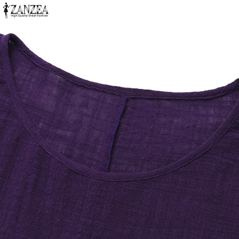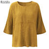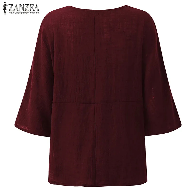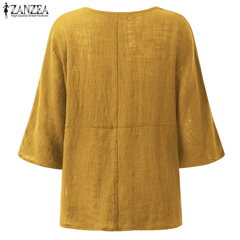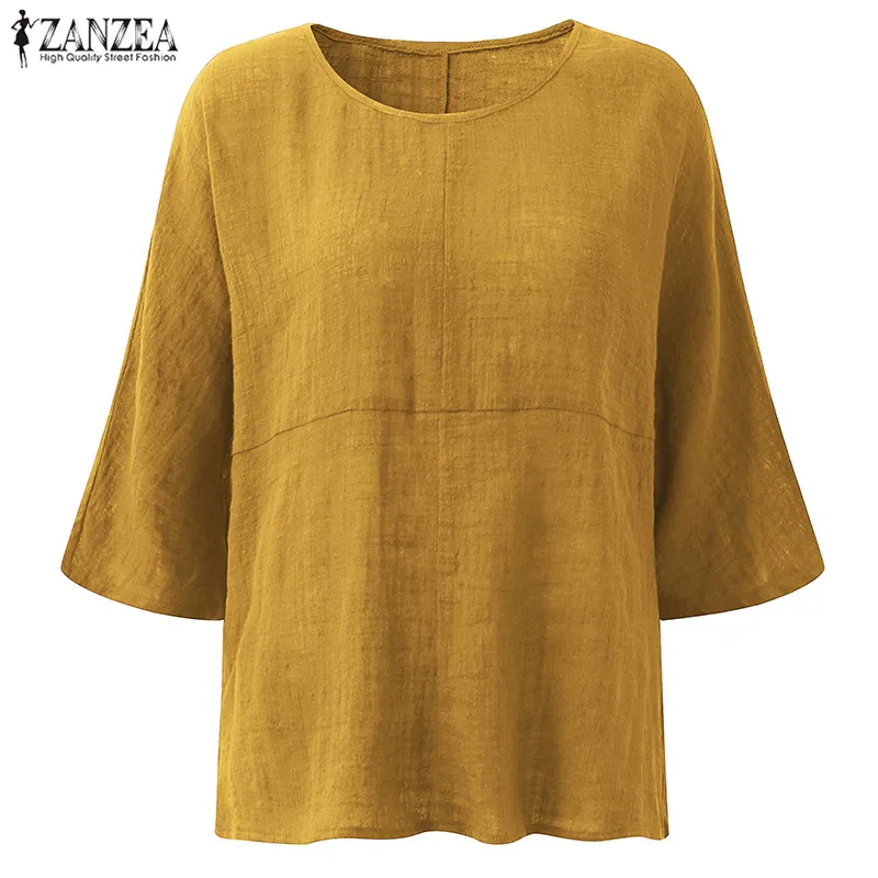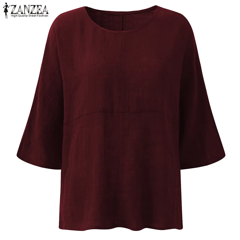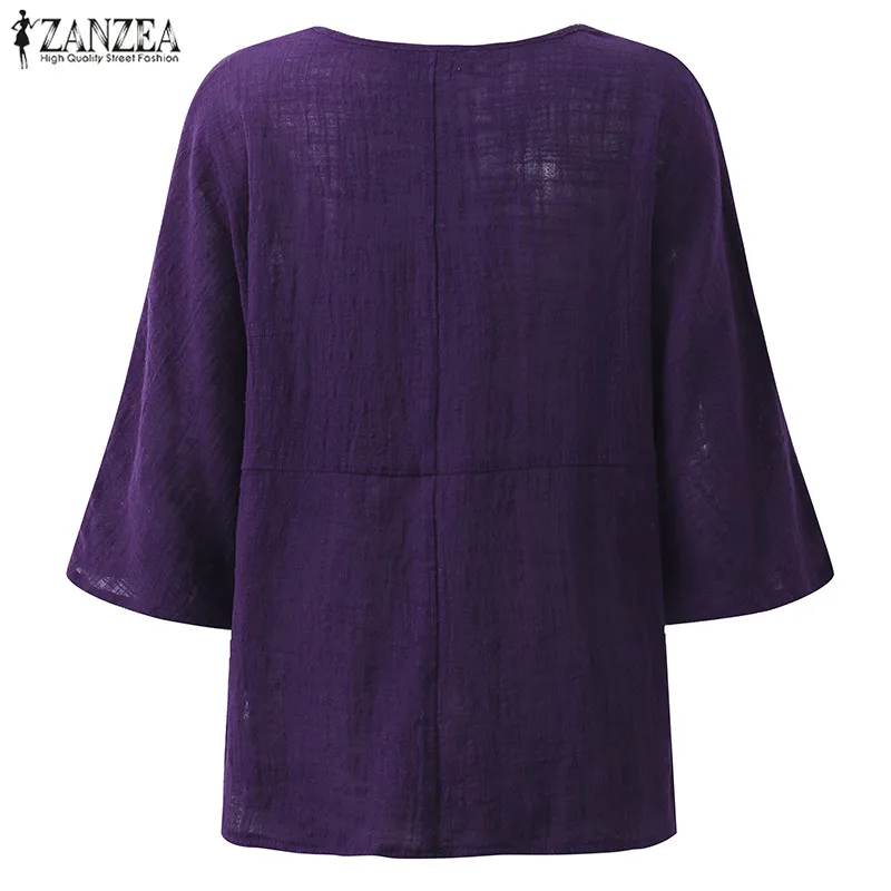 Top Blusas 2018 ZANZEA Autumn Women Retro O Neck 3/4 Sleeve Casual Loose Summer Solid Shirt Baggy Cotton Linen Blouse Plus Size