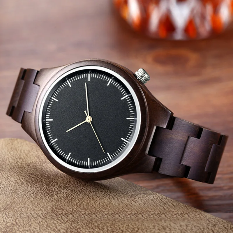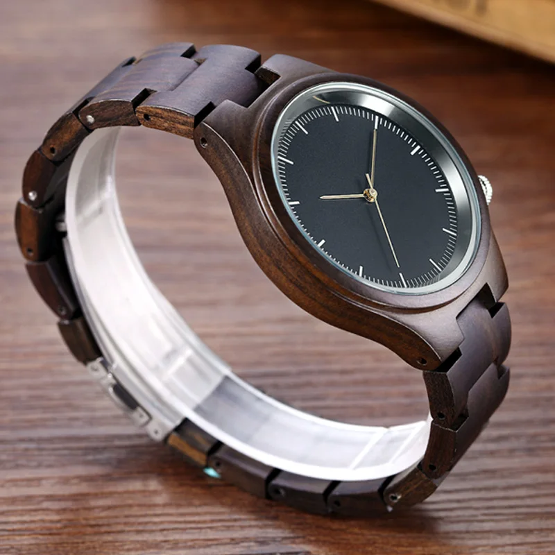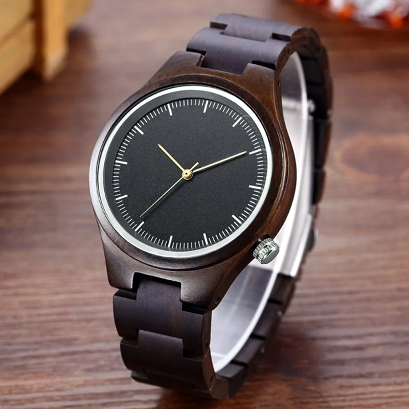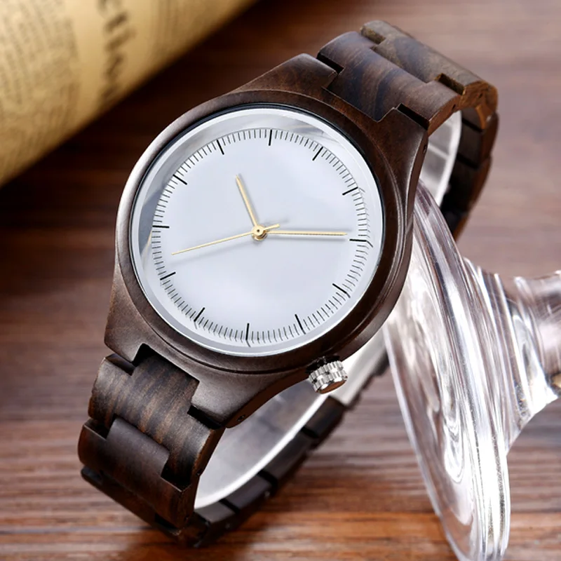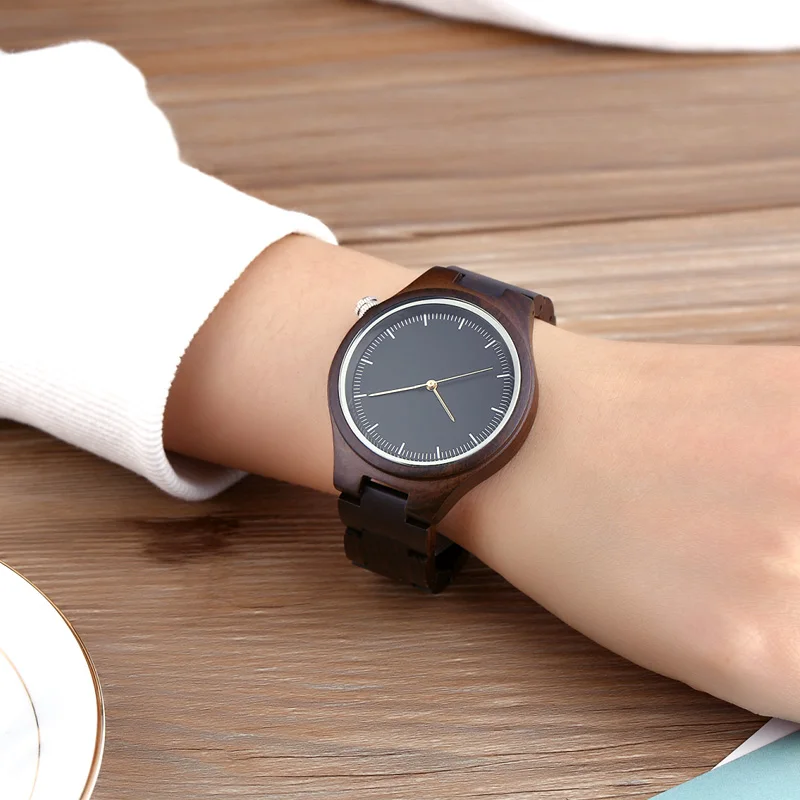 Top Ladies Clock Black Sandal wooden Watch Women Luxury2018 Fashion Vintage Quartz Small Wristwatch Gold With Box Gift for Femme