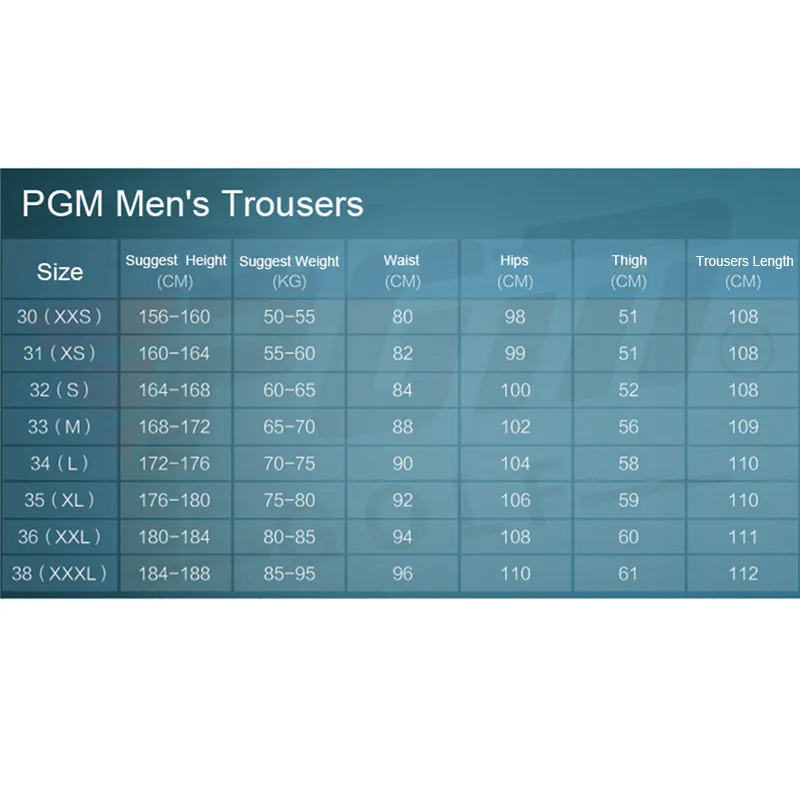 | Size | Suggest Heigh (CM) | Suggest Weight (KG) | Waist (CM) | Hips (CM) | Thigh (CM) | Trousers Length (CM |