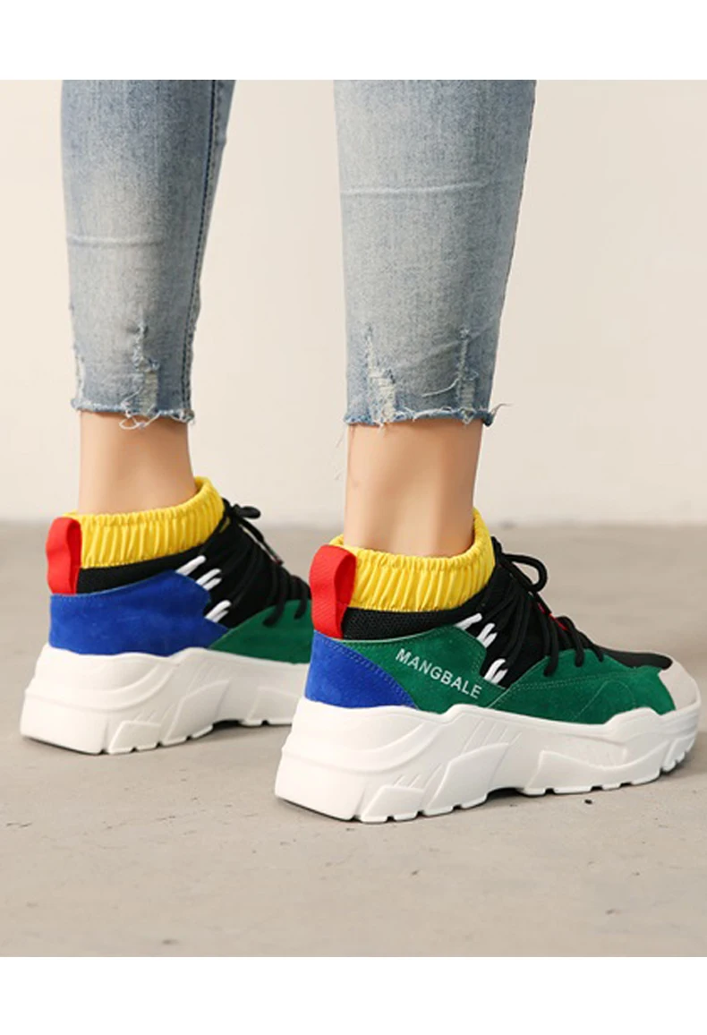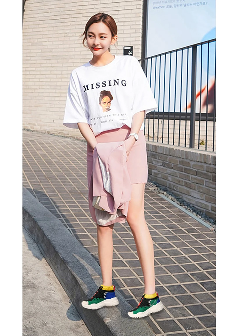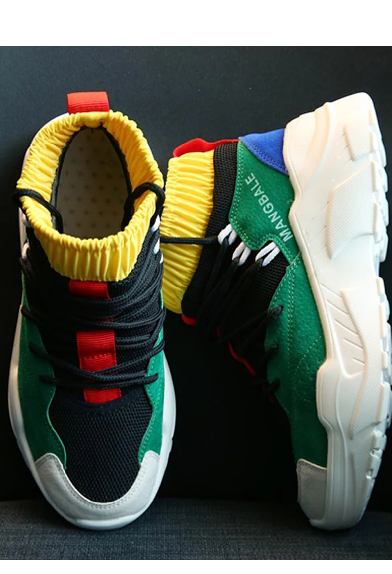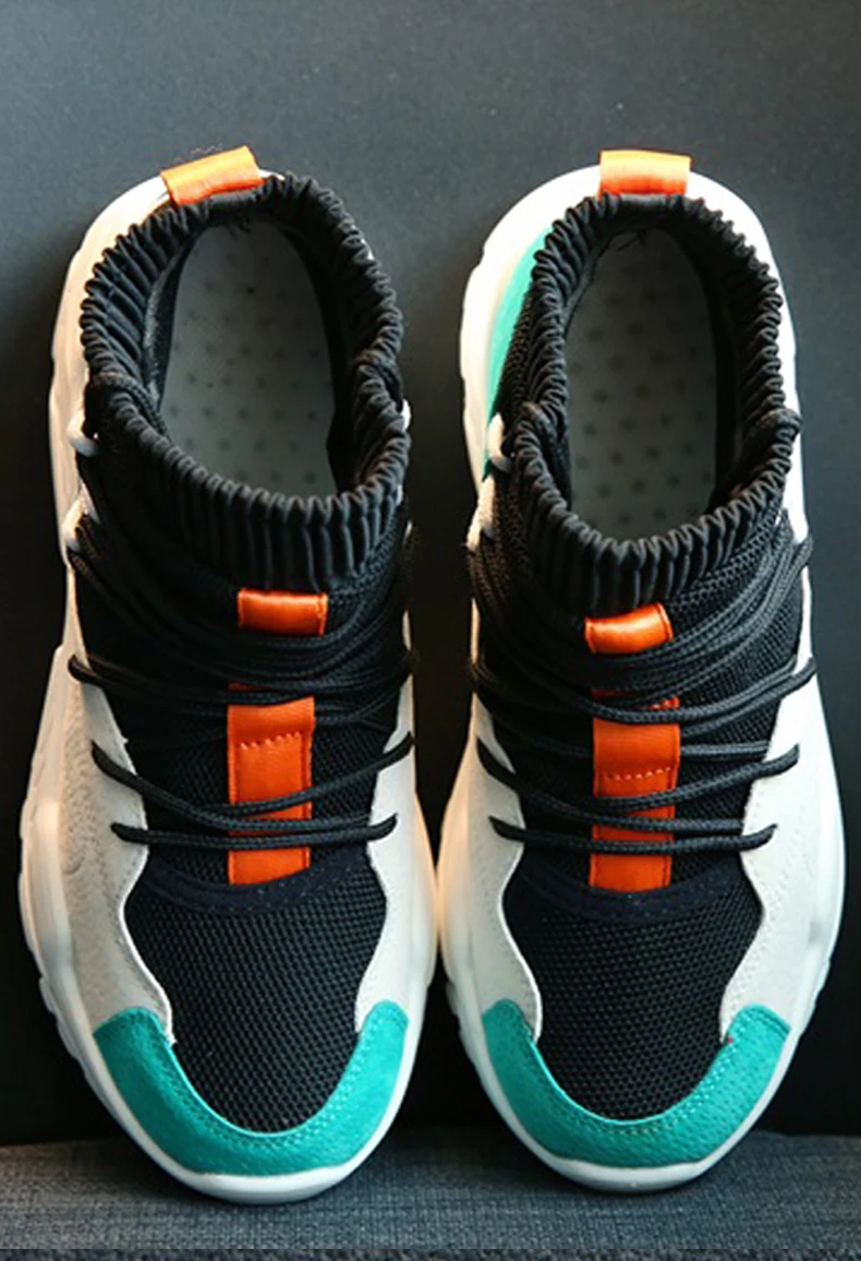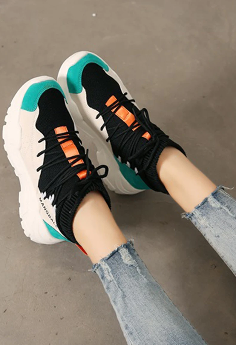 Top Quality Women Sock Sneakers Breathable Mesh Walking Shoes Lace up Woman Shoes Thicken Tranier High Top Black Female Shoe