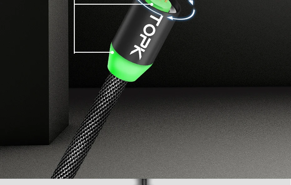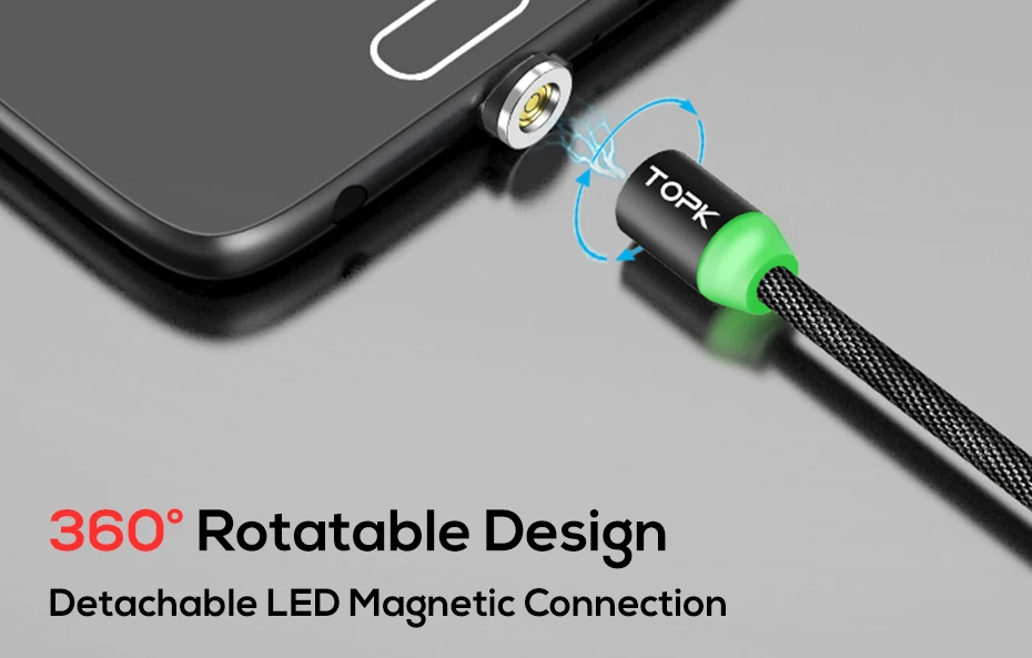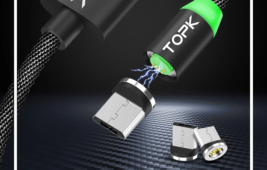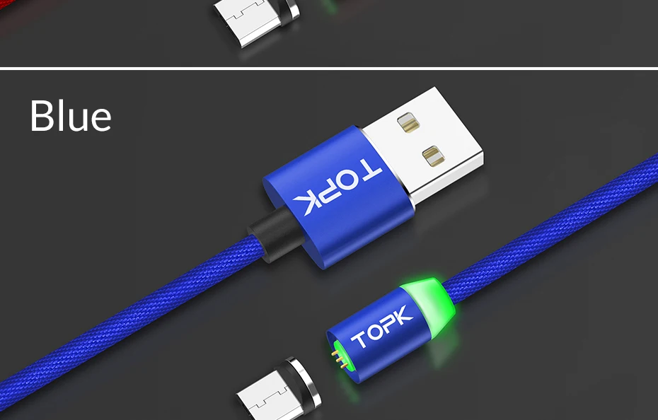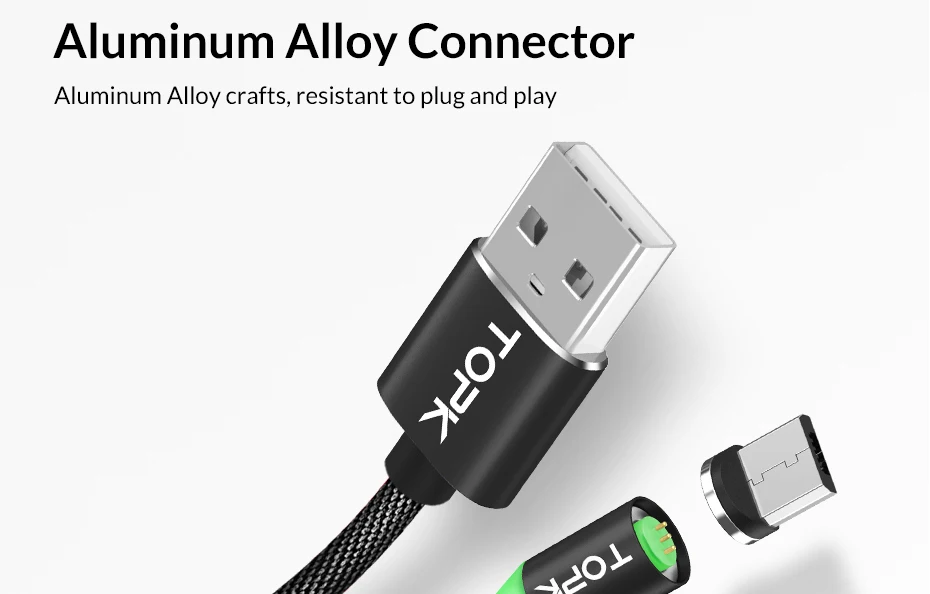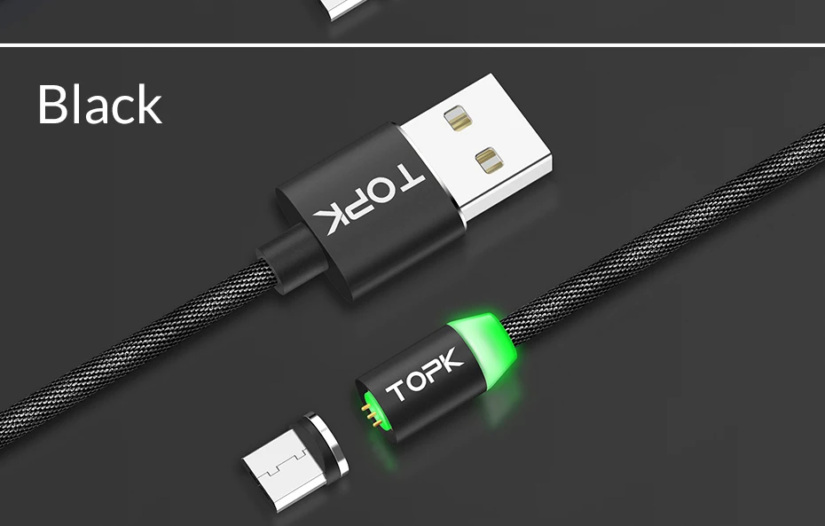 TOPK RLine3 LED Magnetic Micro USB Cable For Samsung Xiaomi Huawei Android Mobile Phones Fast Charging Data Sync Microusb Wire