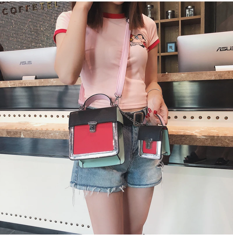 Toposhine New Small 2 Piece Composite Bags For Women 2018 Fashion Shinning Hit Color Teen Girl Shoulder Bag Soft PU Lady Handbag