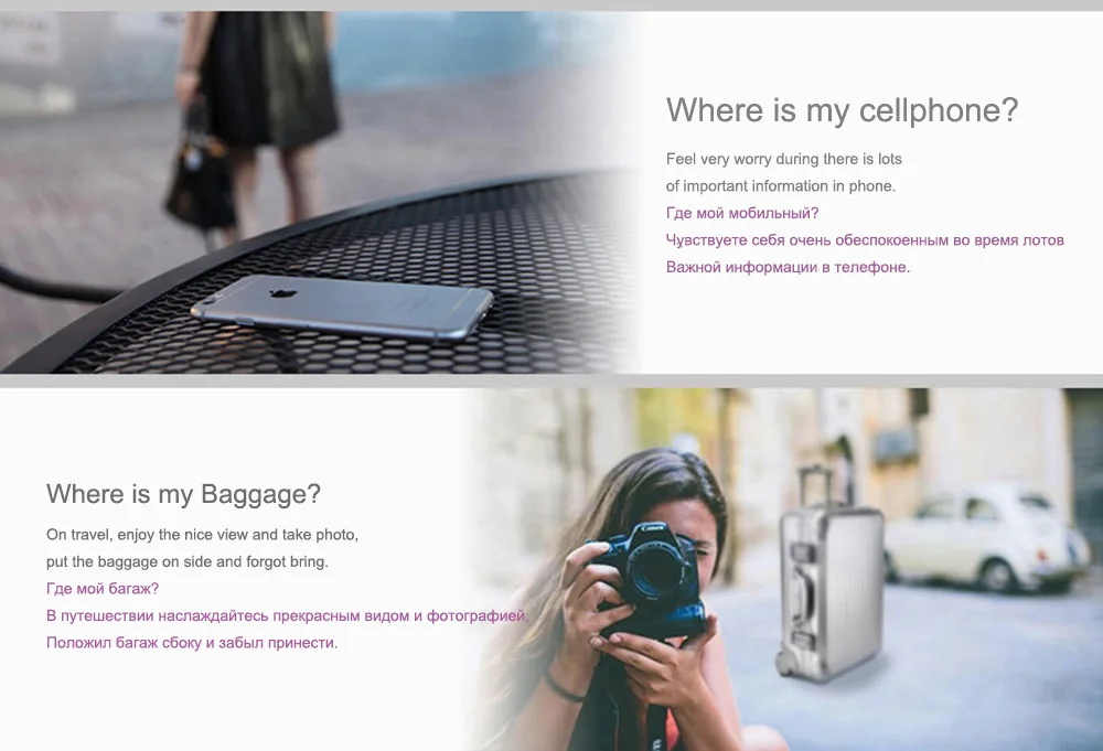 – Out of distance alarm (finder and cellphone alarm sametime)