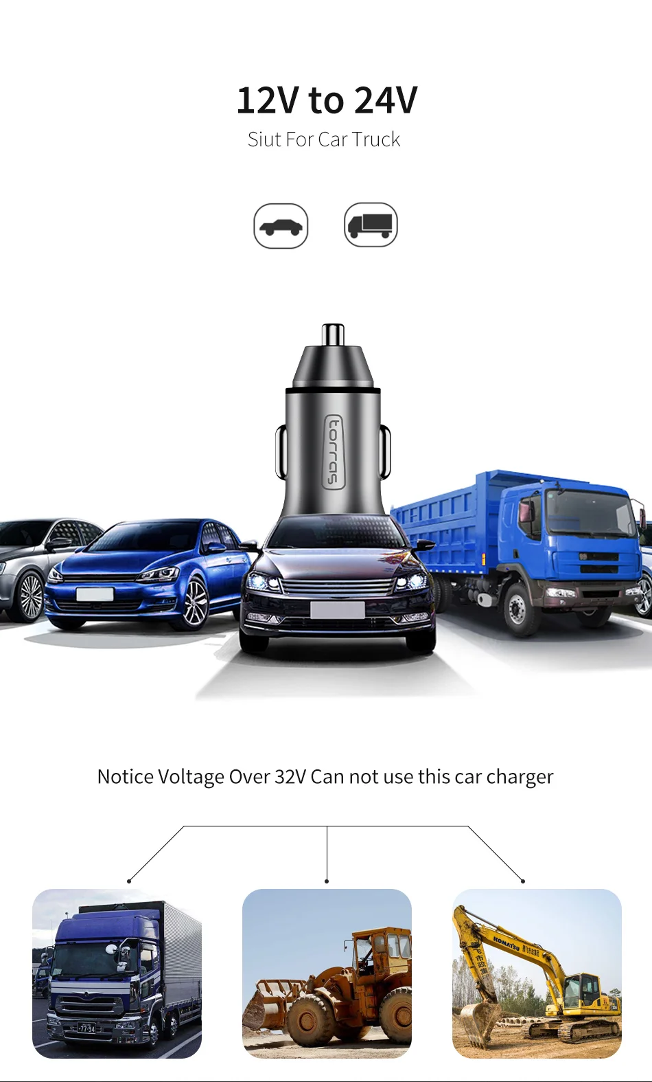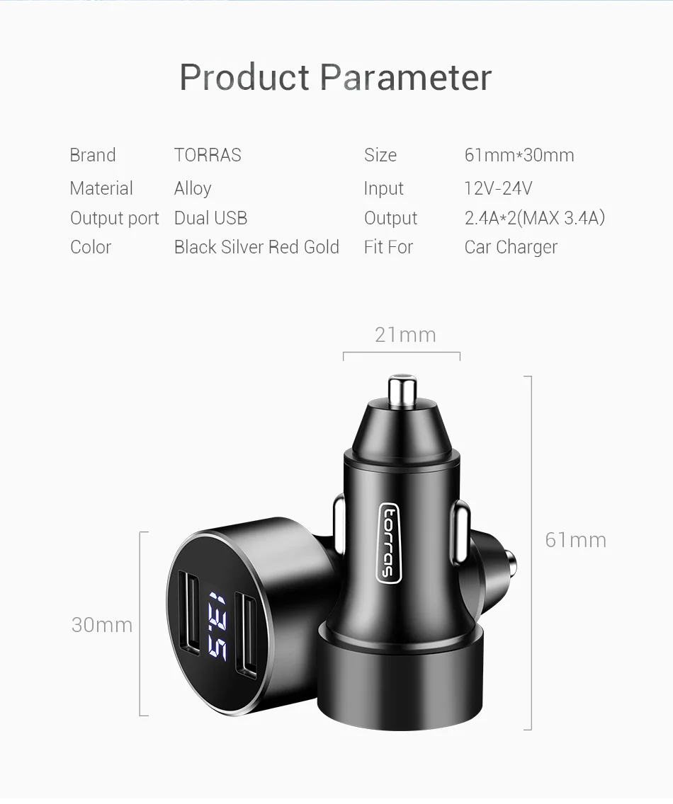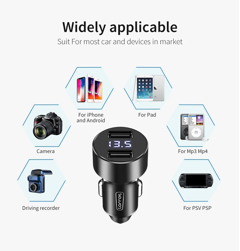 TORRAS Dual USB Car Charger Adapter Display LED 5V/3.4A Fast Charging Phone Charger For iPhone X 8 Plus Car Charger usb Fast LED