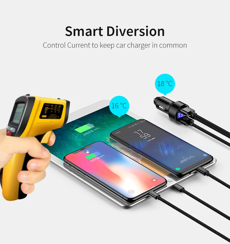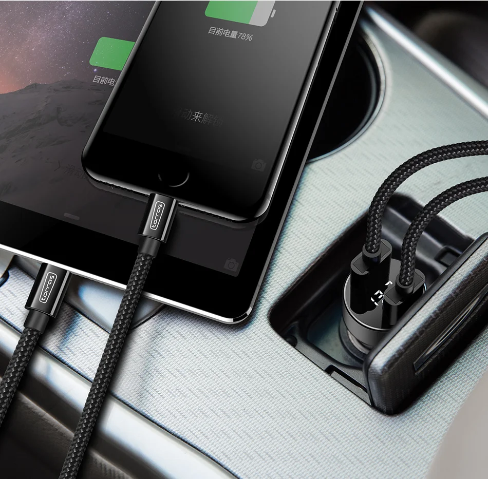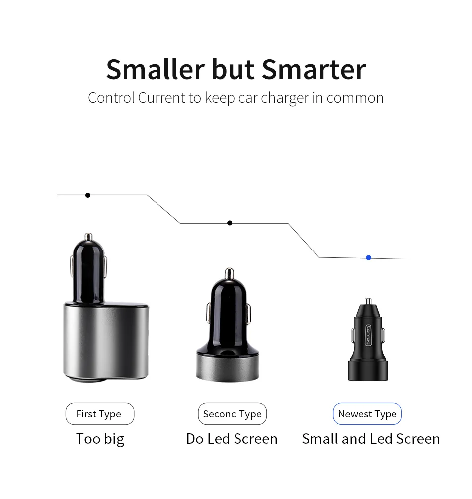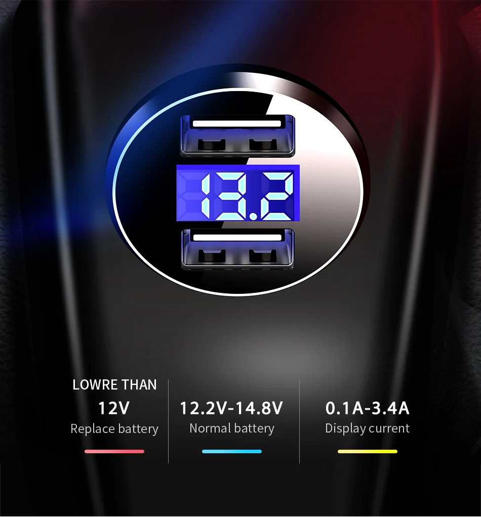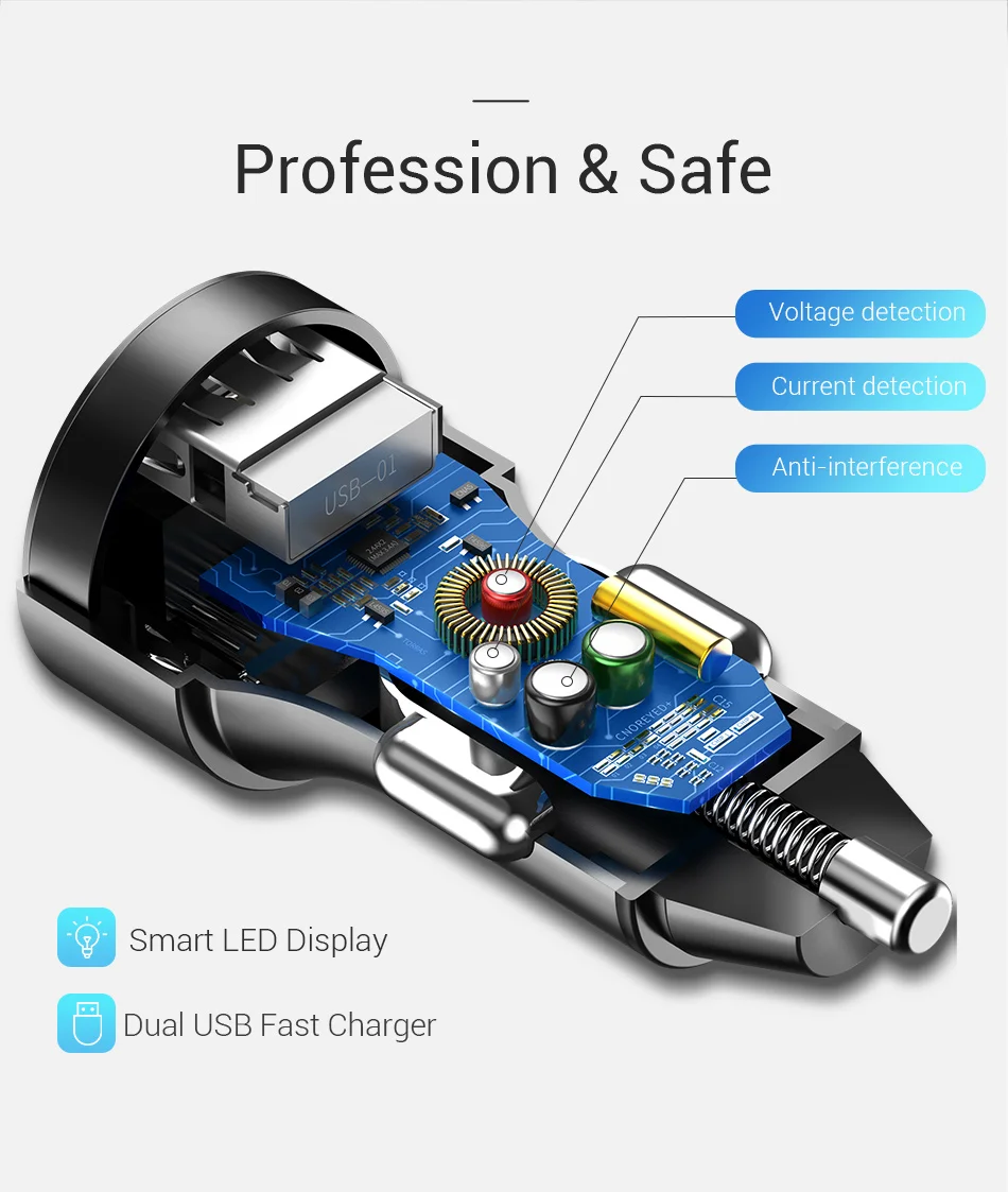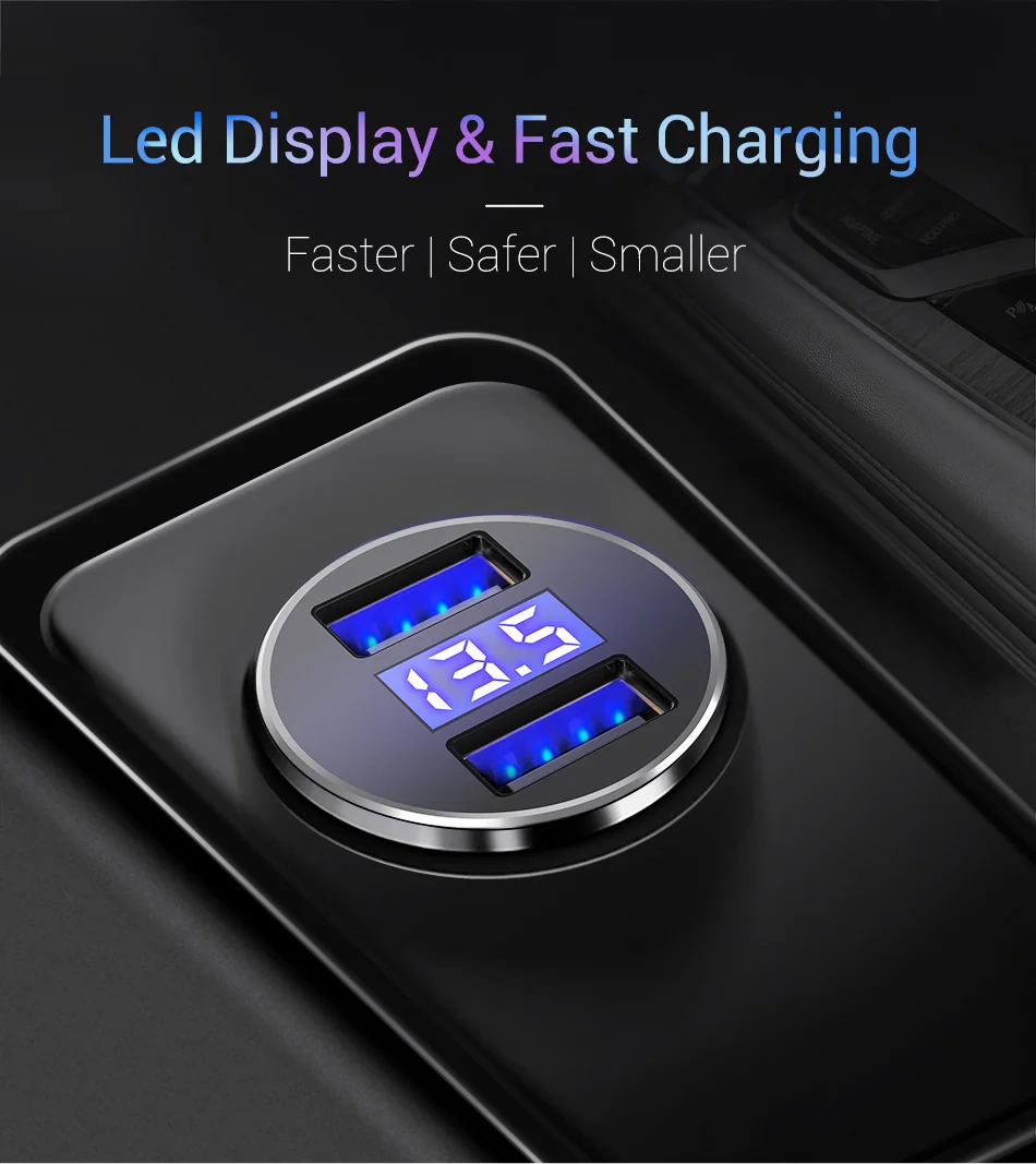 Led Display & 2 Port USD Car ChargerBulit in Smart Chip & Safe ChargingConstant temperature Charging