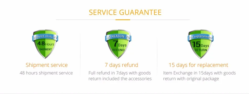 • If you did not receive the product within the guaranteed time( 45 days not including 2-5 day processing) you can request a refund or a reshipment.