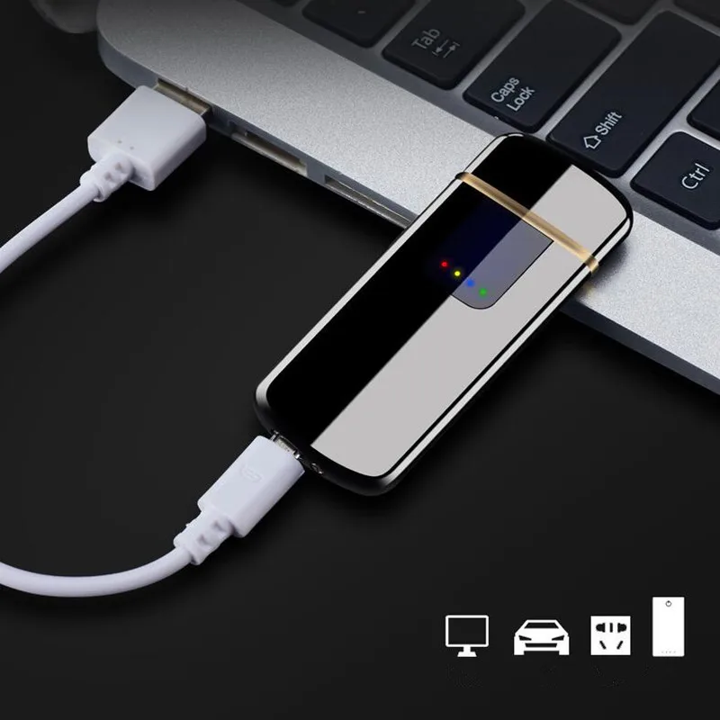 Touch-senstive Switch Smoking Electronic lighters USB Windproof flameless electric cigar charging lighter double side power new
