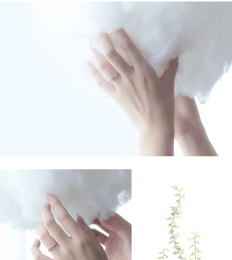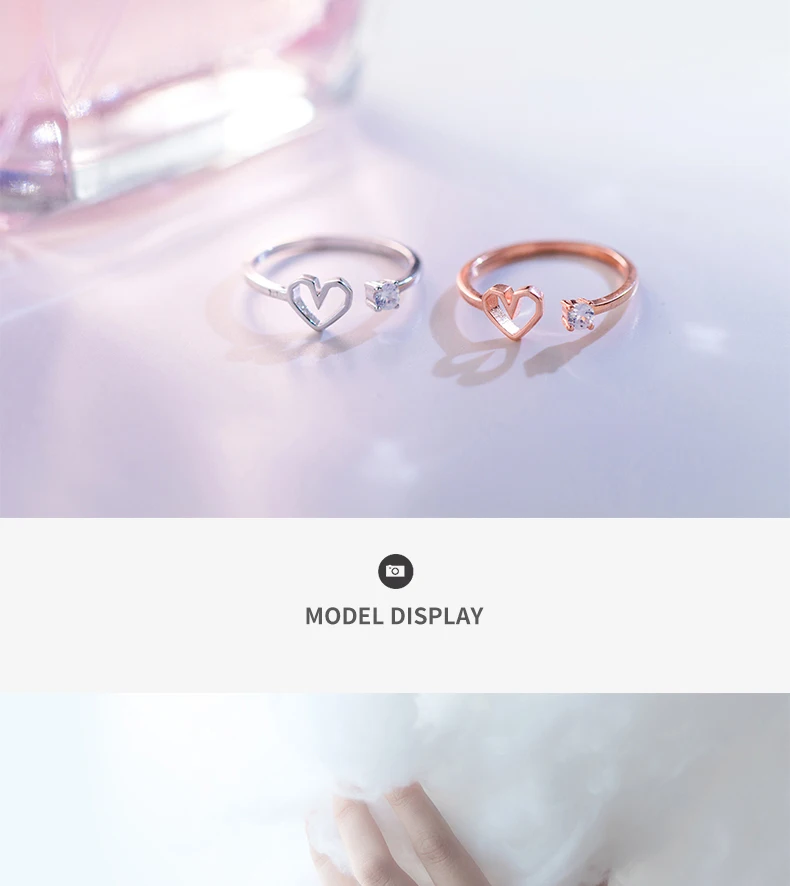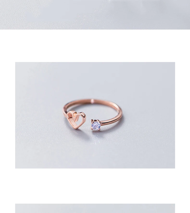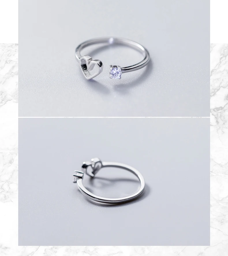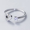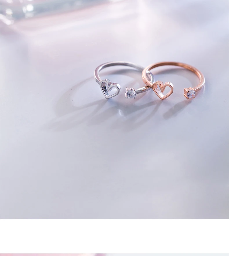 TOYOOSKY 925 Sterling Silver Love Heart Ring Female Crystal Hollow Shape Opening Ring Sweet Cute Ring Jewelry Gift