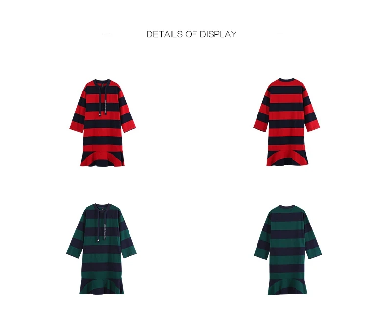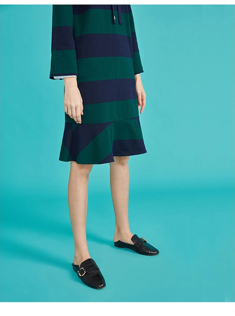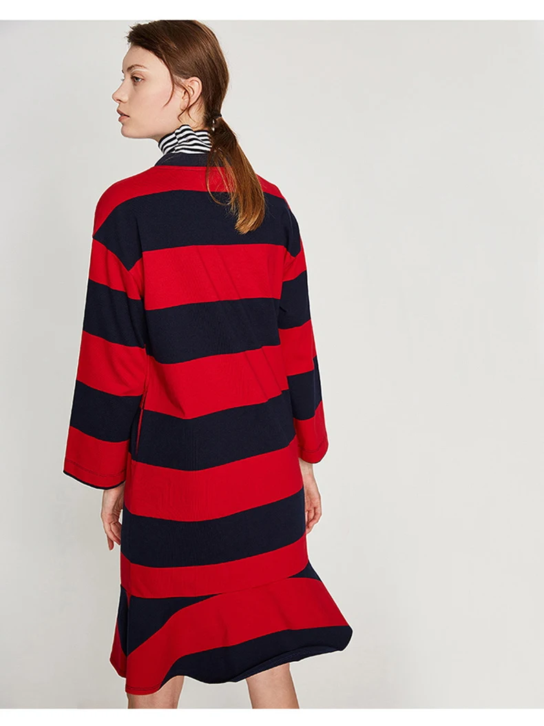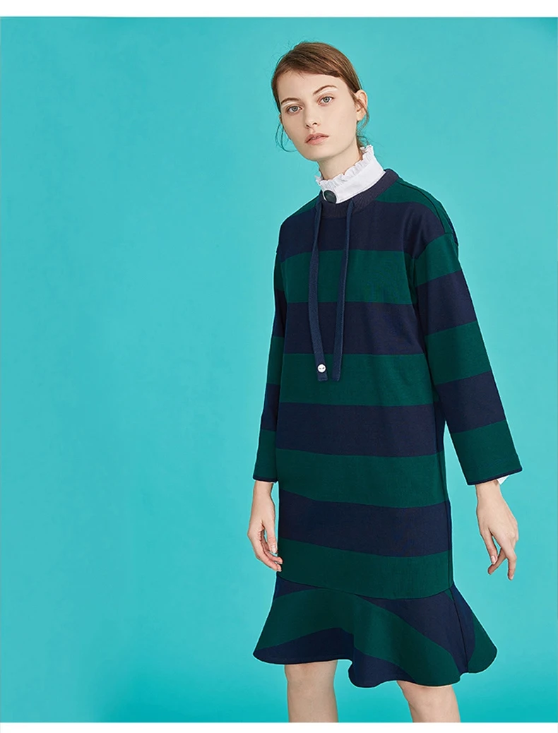 Toyouth Cotton Long Women Dresses Loose Striped O-Neck Winter Dress Knitted Embroidery Ladies Dresses Ruffles Casual Vestidos