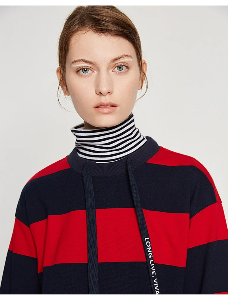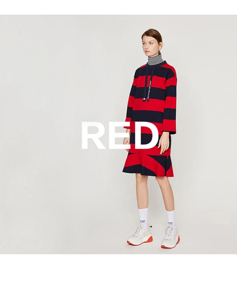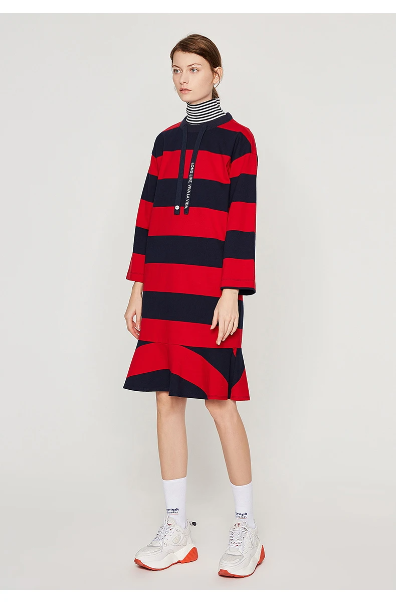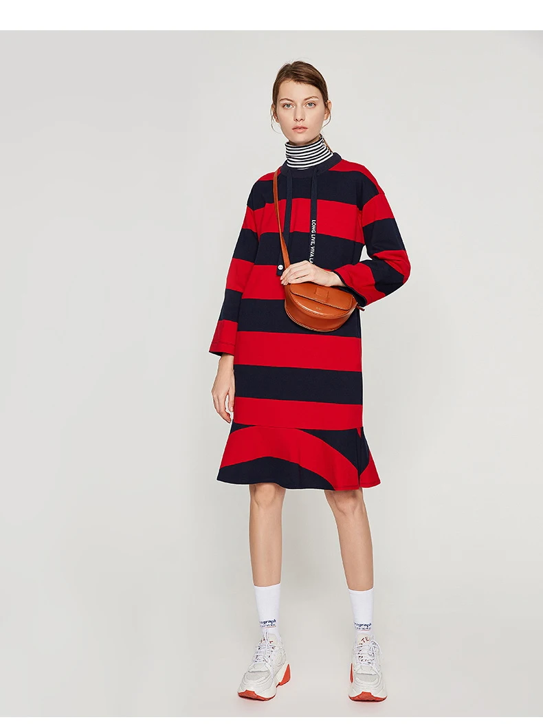 Toyouth Cotton Long Women Dresses Loose Striped O-Neck Winter Dress Knitted Embroidery Ladies Dresses Ruffles Casual Vestidos