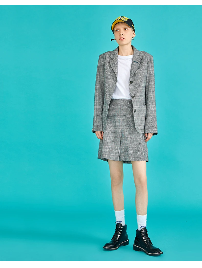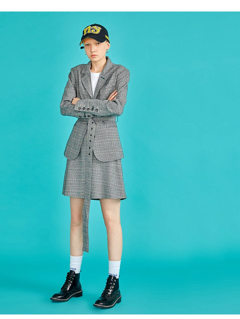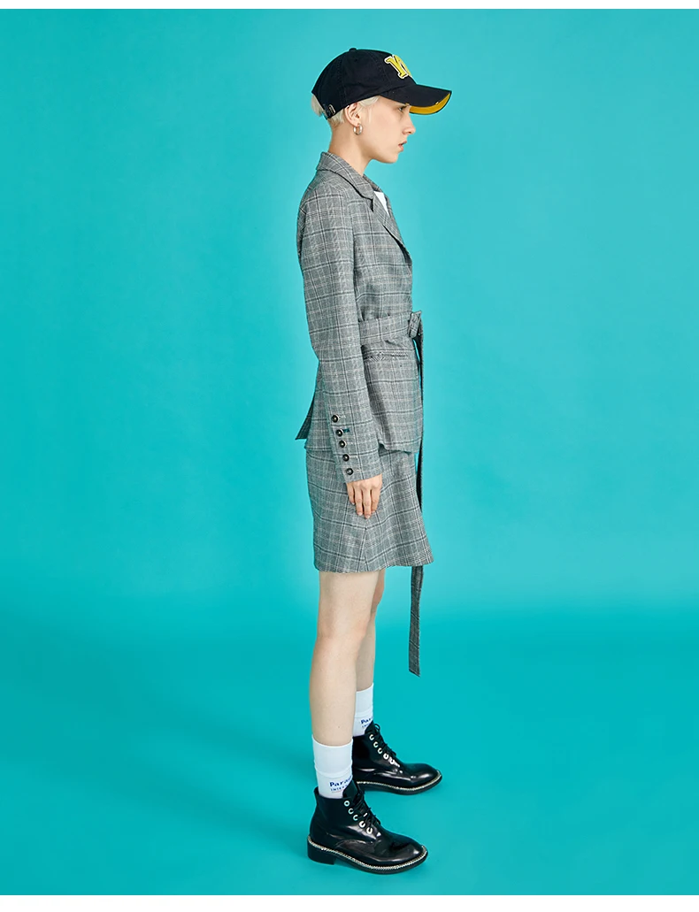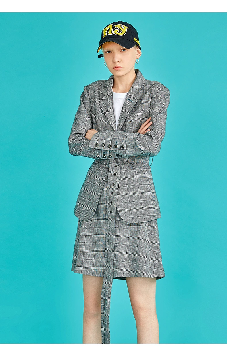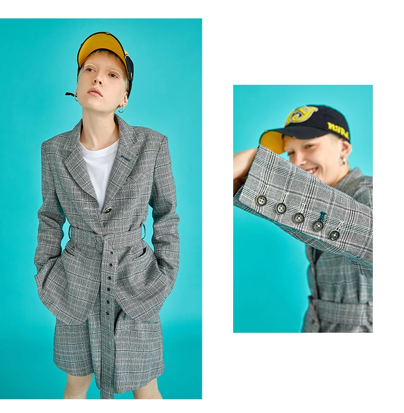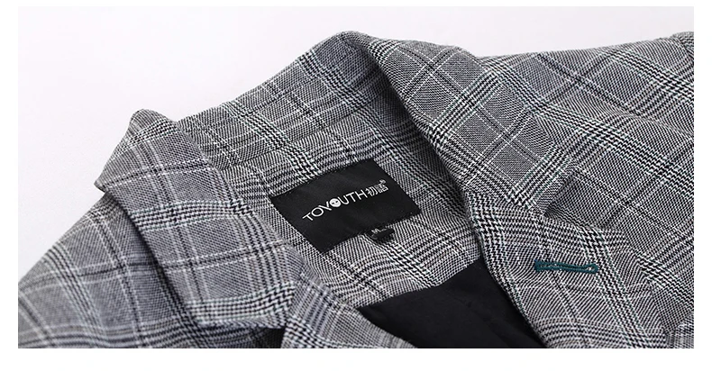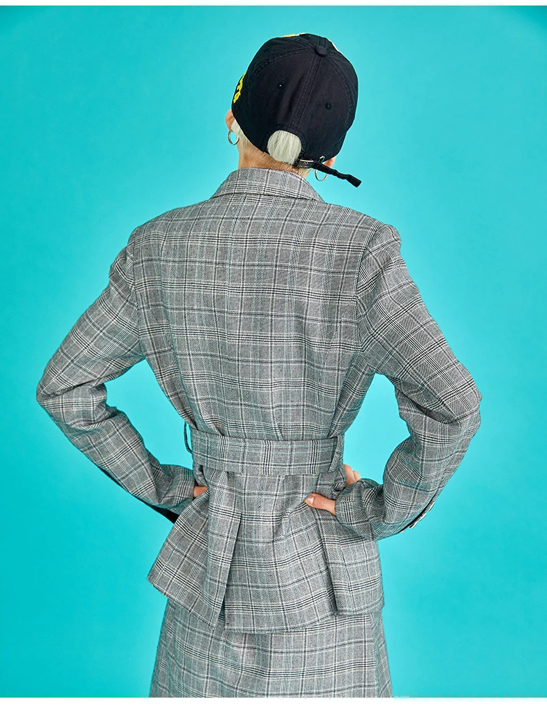 Toyouth Plaid Formal Wearwork Jacket Women British Style Chic Ladies Blazer Belted Office Button Vuntage Female Coat Tops
