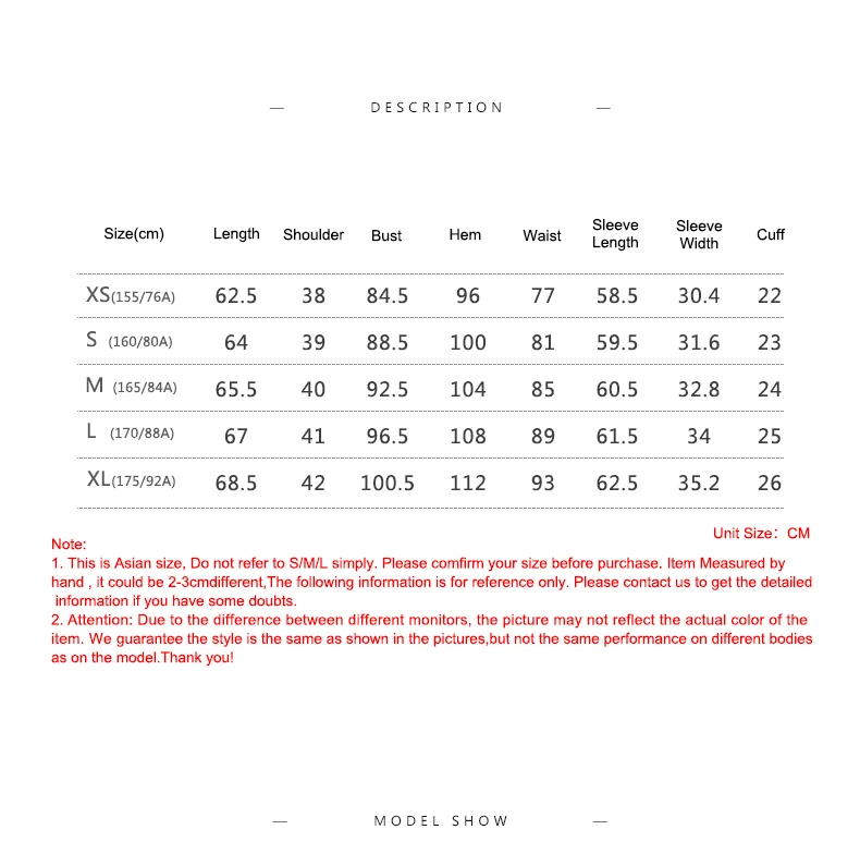 XS S M L XL