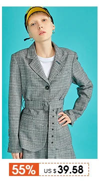 Toyouth Plaid Formal Wearwork Jacket Women British Style Chic Ladies Blazer Belted Office Button Vuntage Female Coat Tops