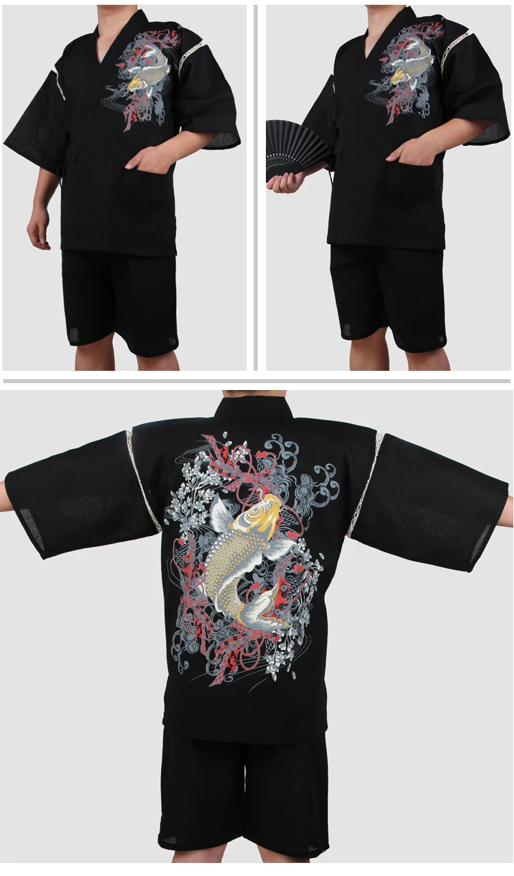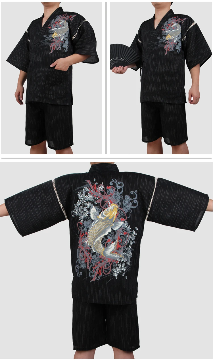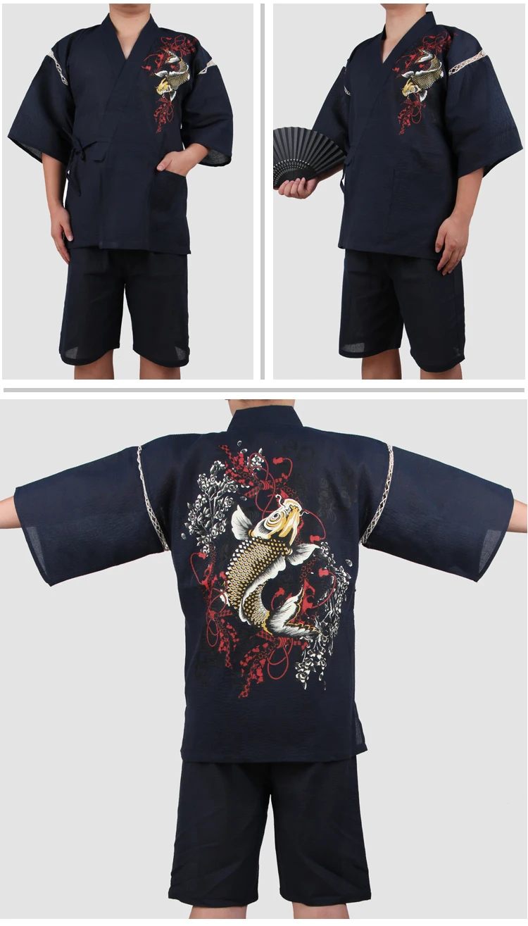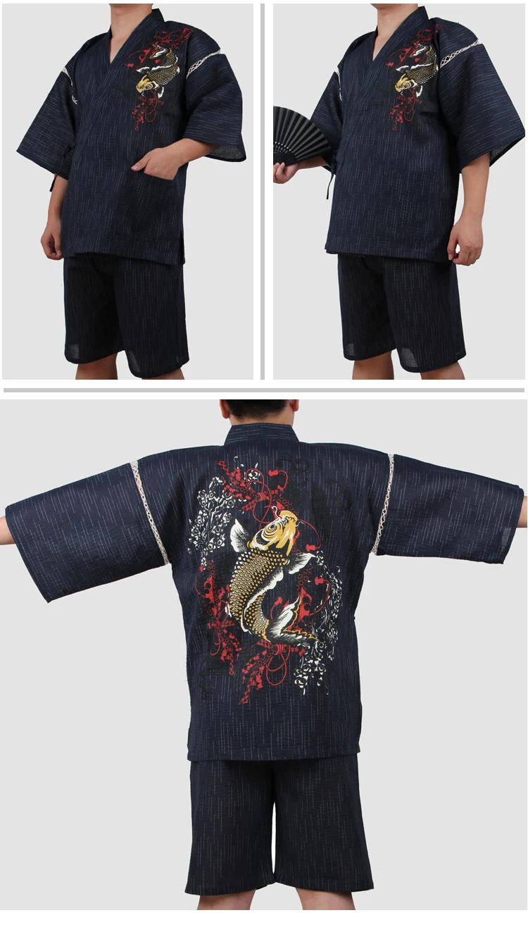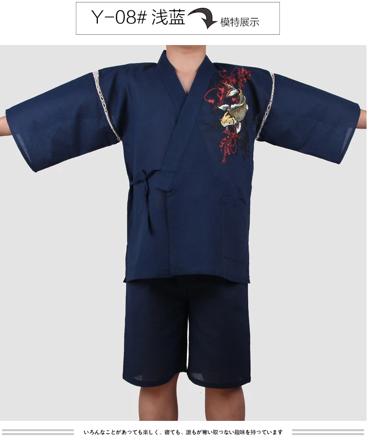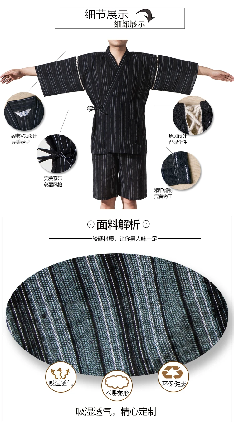 Traditioal Japanese Pajamas Sets Men Yukata Kimono Cotton Male Loose Japan Home Clothing Sleepwear Bathrobe Leisure Wear A52508