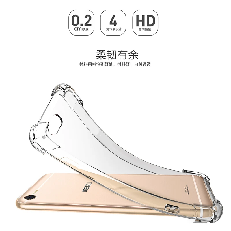 Transparent Clear Shockproof TPU Soft Case For Meizu M5C Pro7 15 Plus M5 M6 M3 MINI Note M3S M5S M6S Full Protective Case Cover