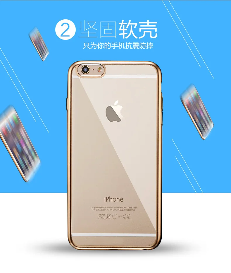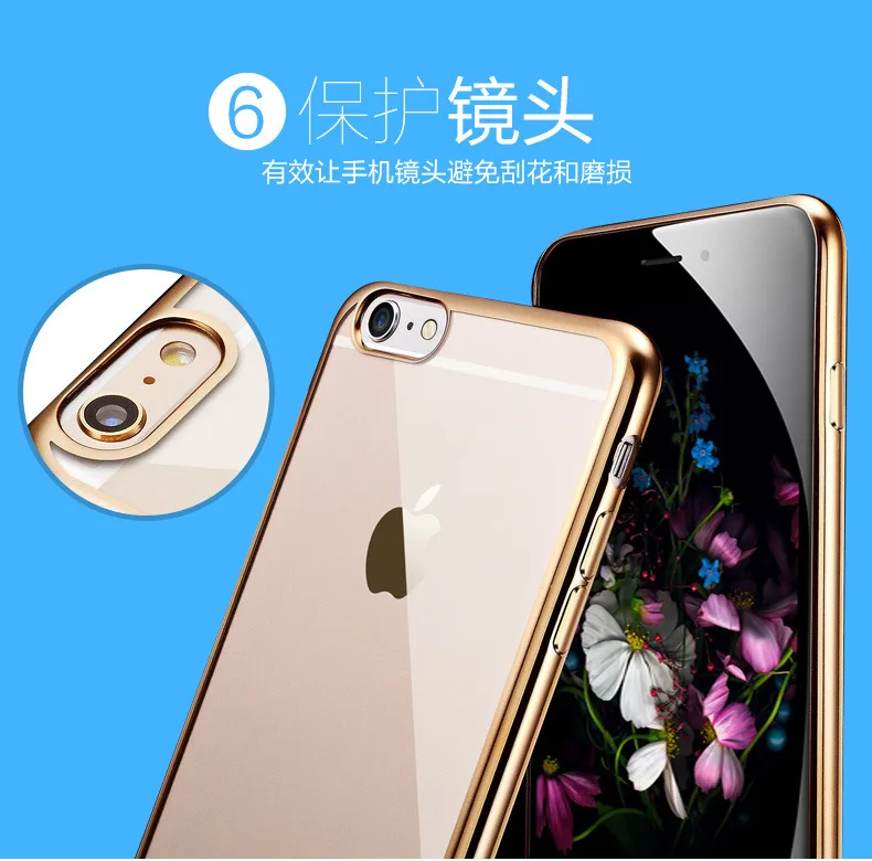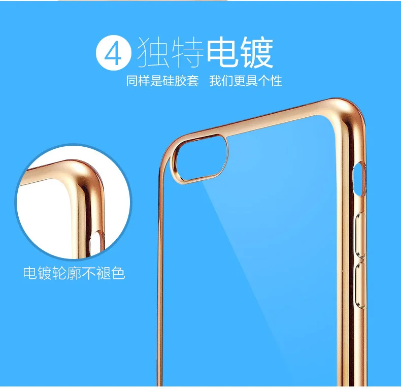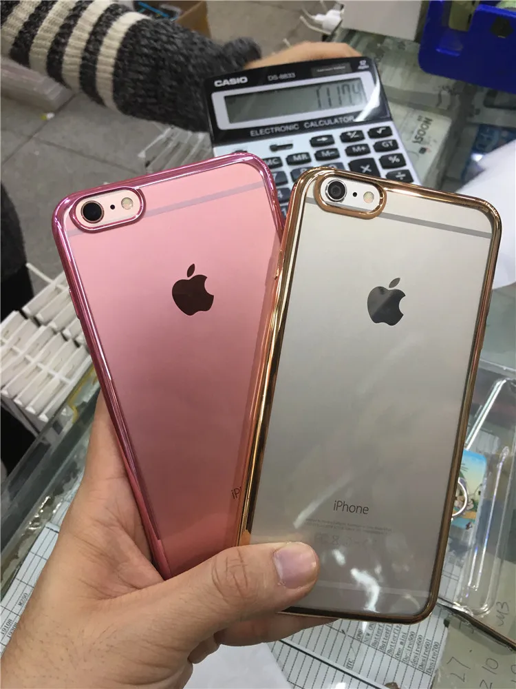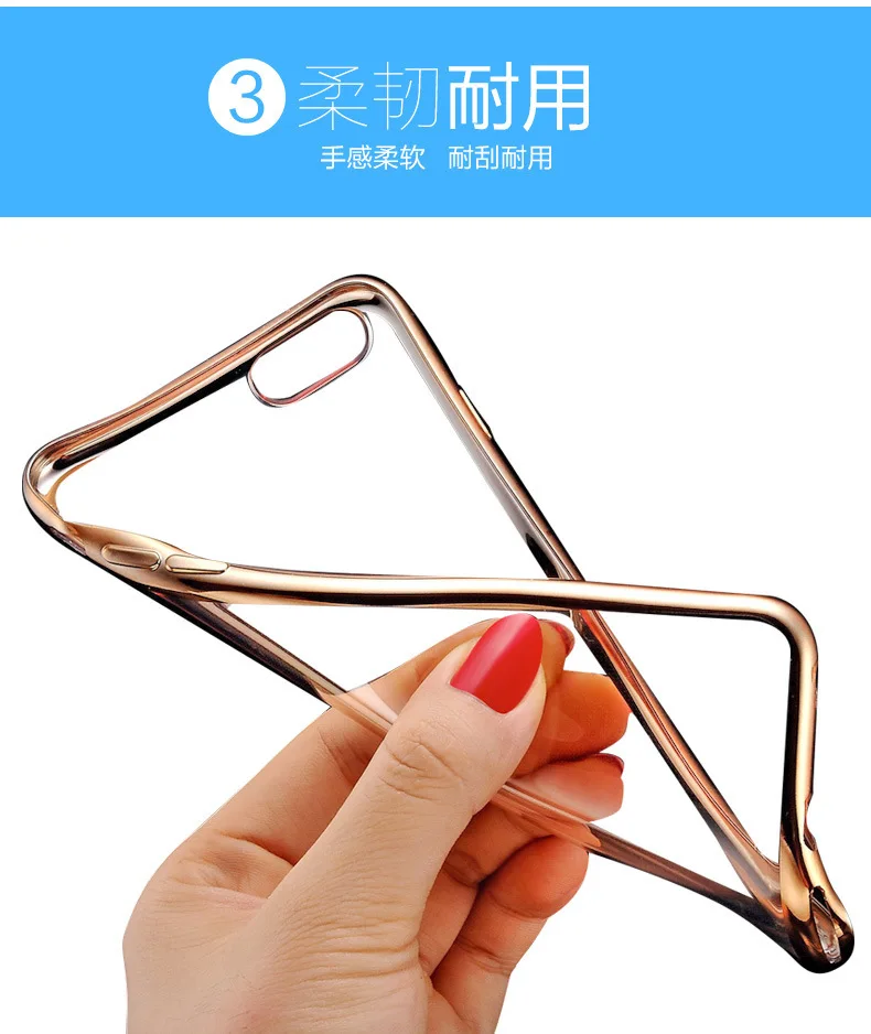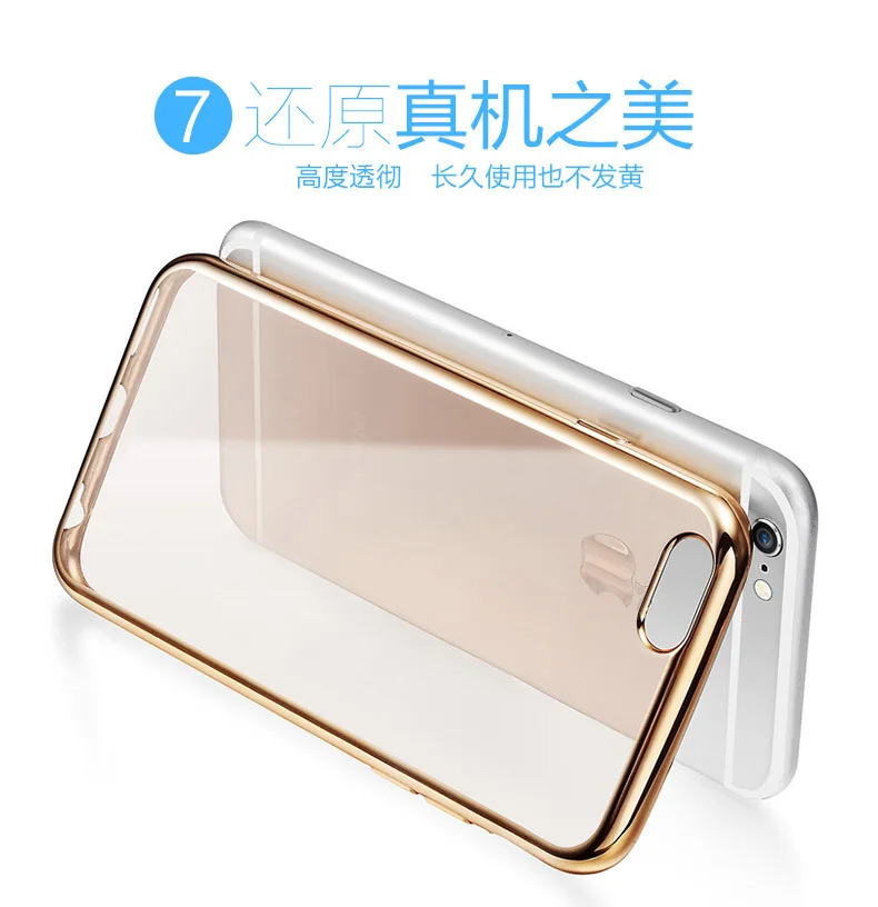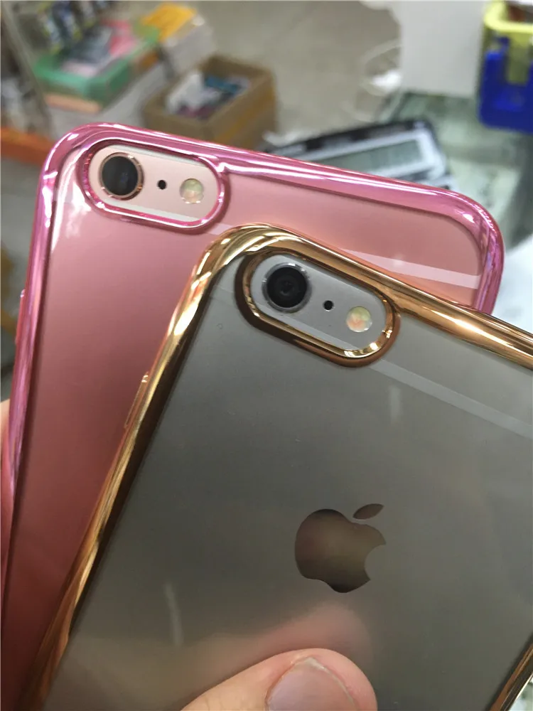 Transparent TPU Soft Phone Case For iphone X 5S SE 5C6 6SPlus 7 7Plus Crystal Rubber Electroplating In Silver Gold and Rose Gold
