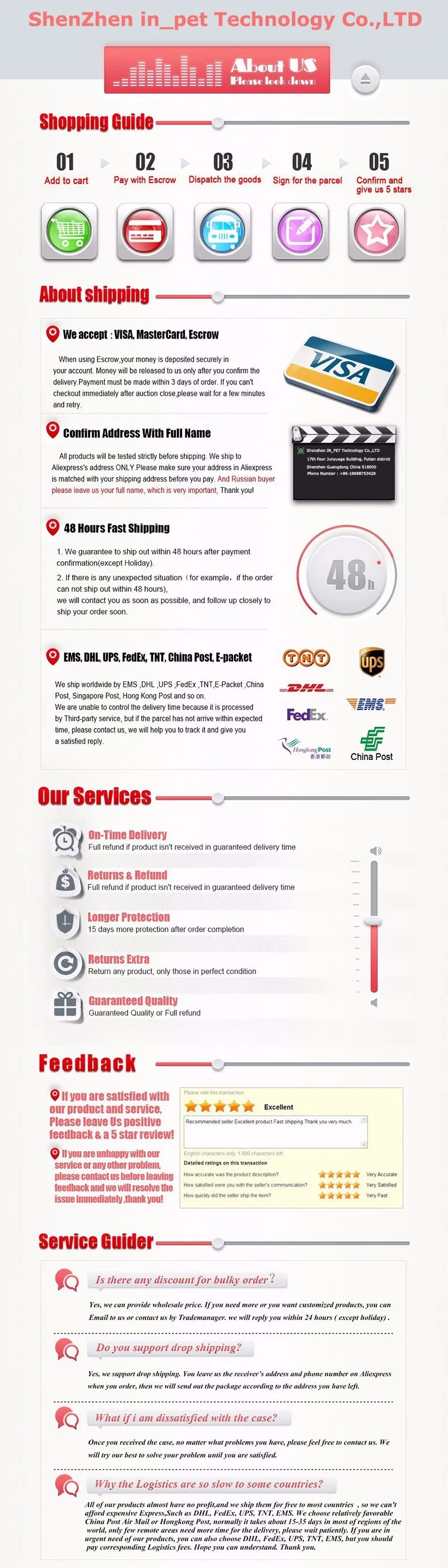 • If you did not receive the product within the guaranteed time( 45 days not including 2-5 day processing) you can request a refund or a reshipment.