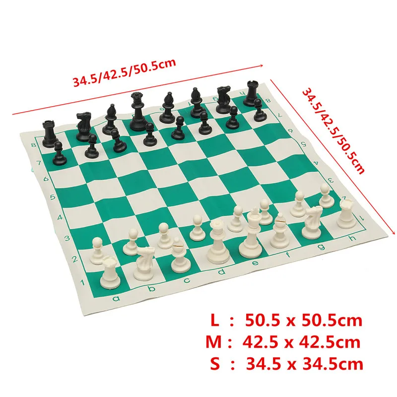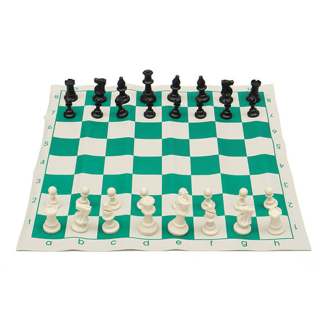 Traveling Portable Chess Titans Traditional Chessboard Set for Tournament Club with Green Roll-up Board + Plastic Bag Chess Game