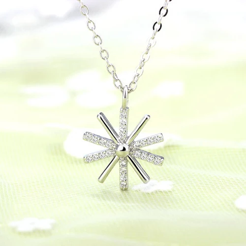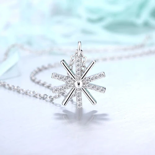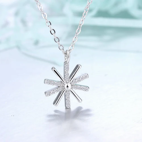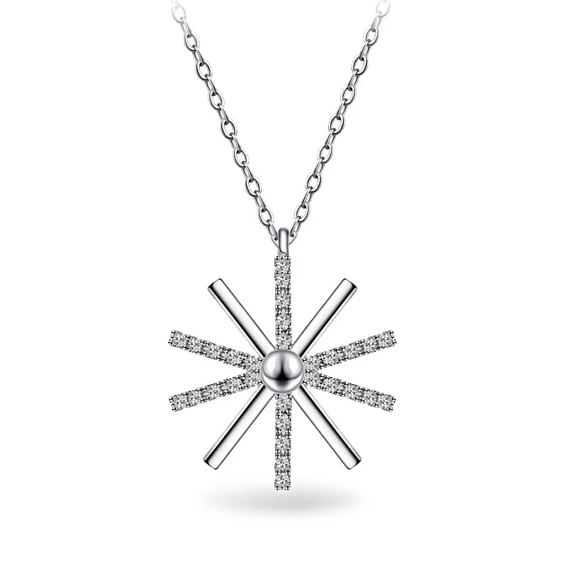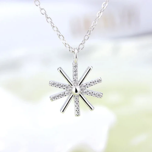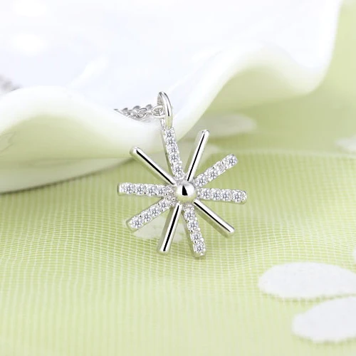 Trendy Cute Snowflake Pendant Chokers Necklace 925 Sterling Silver With Shiny AAA Crystal Jewelry For Woman Girls