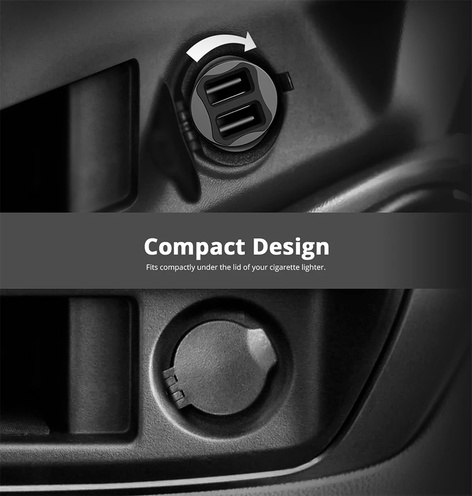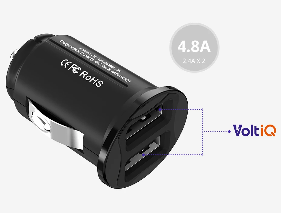 Tronsmart C24 Two Ports USB Car Charger VoltiQ Car-charger Phone Fast Charger USB Adapter Short Circuit Protection CE FCC RoHS